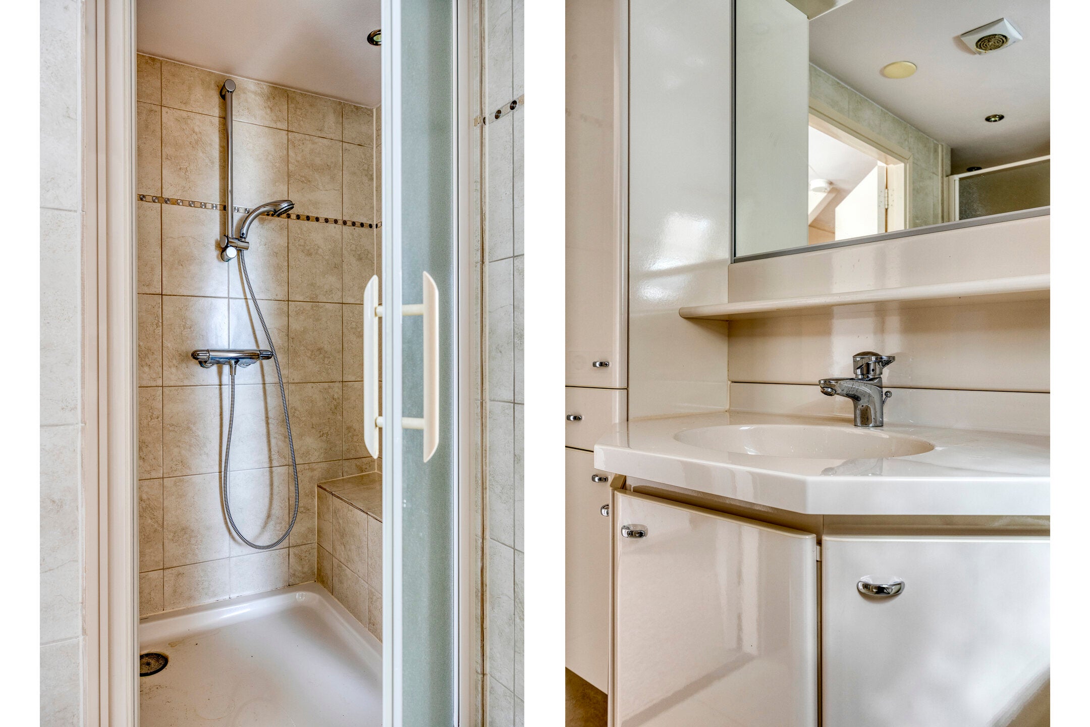 De indeling biedt op de eerste verdieping een woonkamer met haard, een woonkeuken met een compleet keukentje en openslaande deuren naar het dakterras. De tweede verdieping beschikt over een centrale overloop, twee slaapkamers en een badkamer voorzien van een douche en wastafel. Daarnaast is er een luxe berging met aansluitingen voor water en elektra.