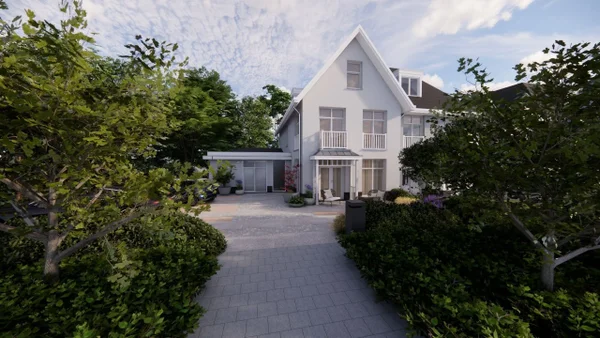 Buitenplaats Kennemer is een nieuwbouw herenhuis gelegen aan de groene Burgemeester Nawijnlaan in Zandvoort, met een royaal woonoppervlak van ongeveer 234 m². Bijzonder is de uitbouw aan de voorzijde die ruimte biedt voor een zelfstandige woonunit met eigen entree, pantry, badkamer en leefgebied. Deze flexibele ruimte is geschikt voor mantelzorg, gastenverblijf, of tijdelijke verhuur.