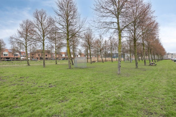 Vrij uitzicht aan de voorkant met een mooie groenstrook en veel speelruimte. Supermarkt en scholen op loopafstand.