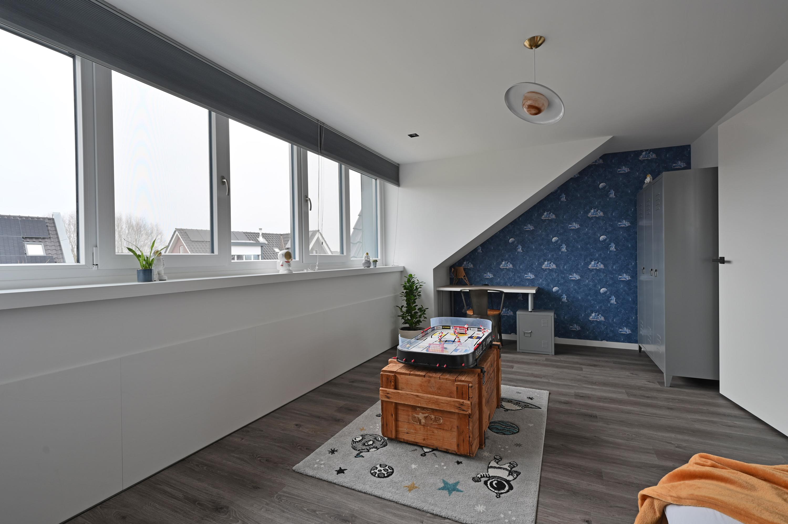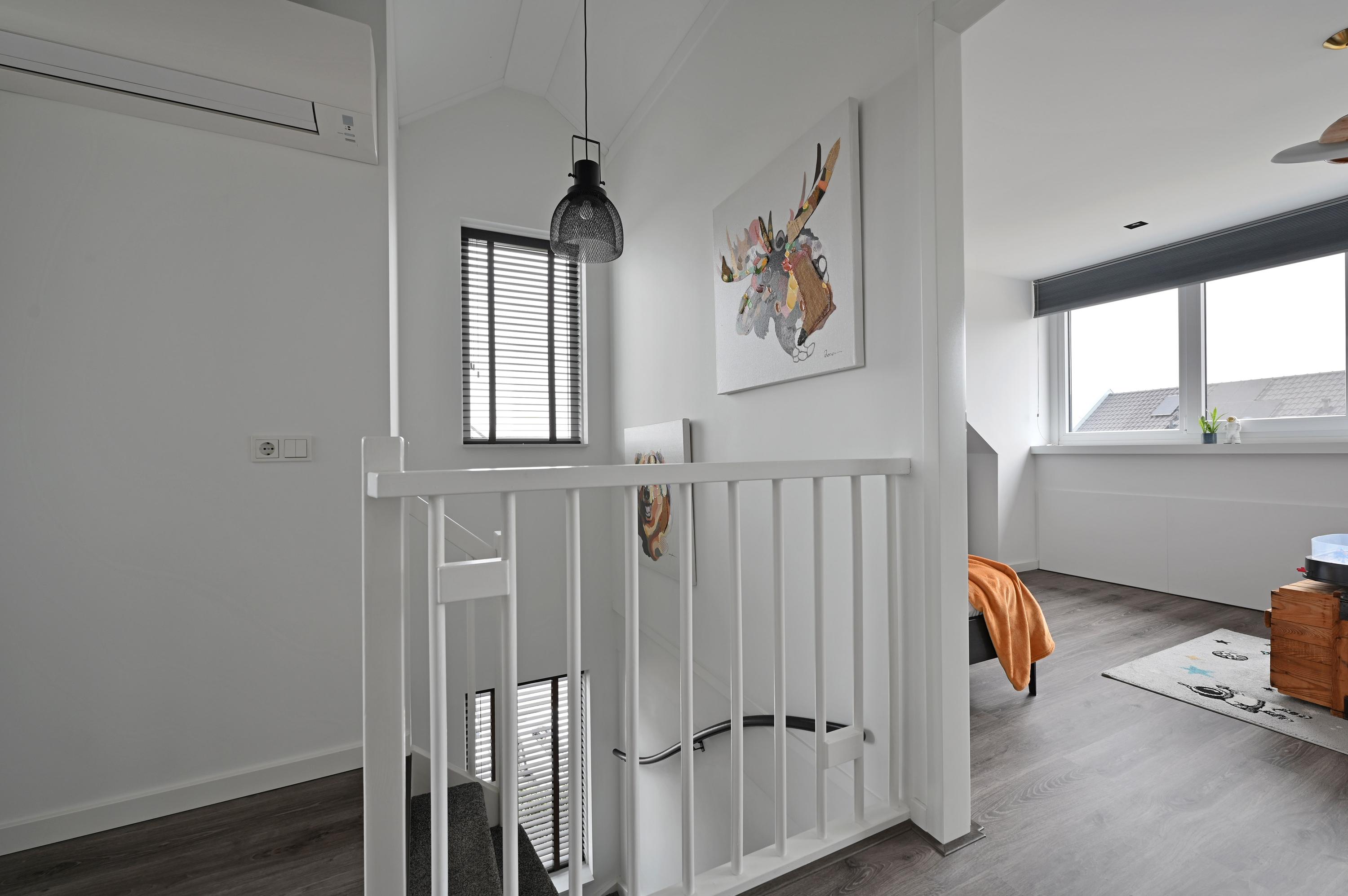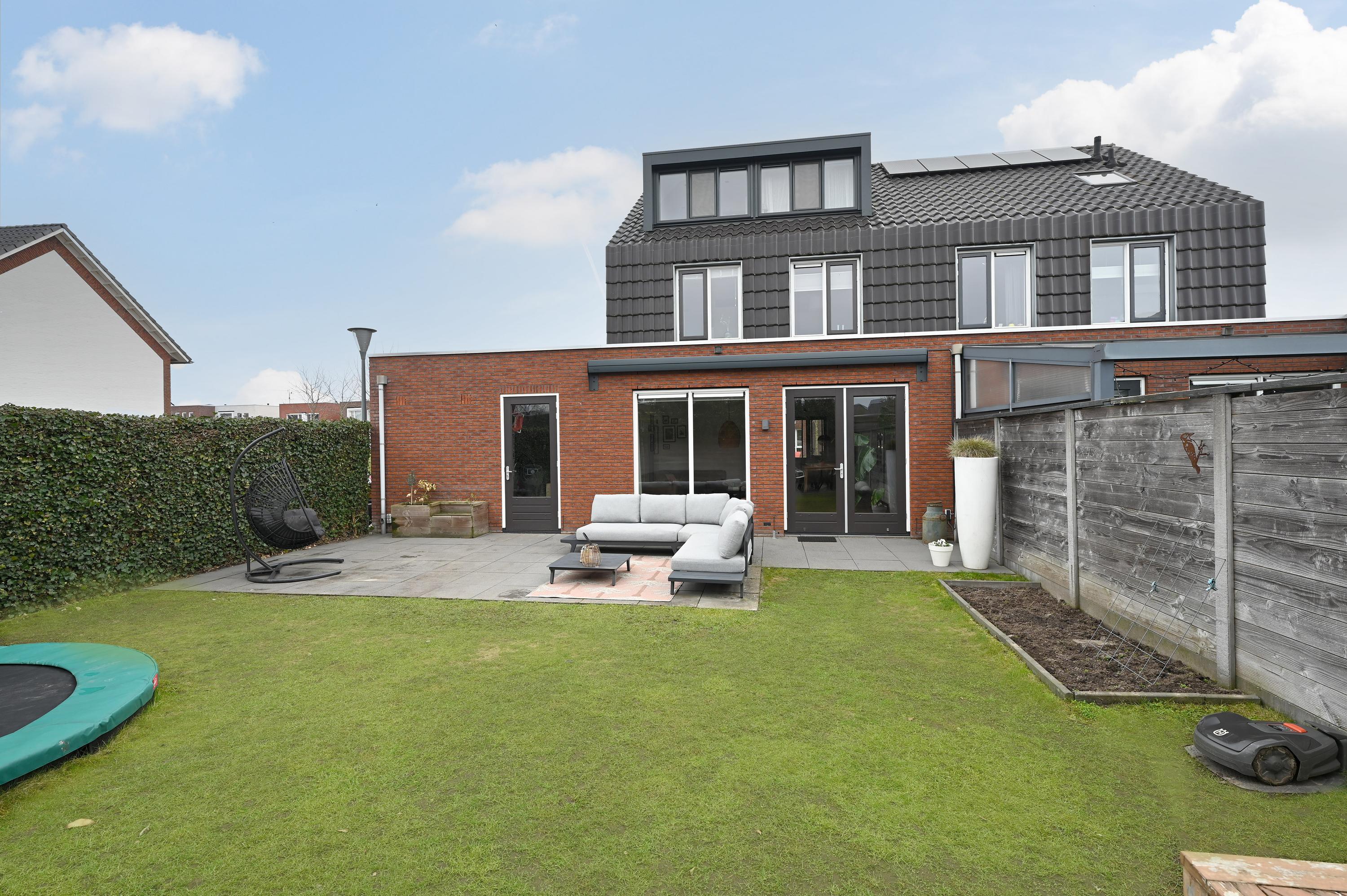 Deze ruime 2-onder-1-kapwoning is de ideale gezinswoning met vijf slaapkamers en een werkplek. De woonoppervlakte van 172 m² biedt genoeg ruimte voor een comfortabel leven. Zowel de voor- als achterzijde zijn voorzien van dakkapellen, wat extra licht en ruimte creëert. De begane grond bestaat uit een ruime keuken met kookeiland en moderne inbouwapparatuur, evenals een tuingerichte woonkamer met vloerverwarming en toegang tot de zonnige achtertuin. De eerste verdieping heeft een luxe badkamer en drie slaapkamers, terwijl de tweede verdieping twee extra slaapkamers, een werkruimte en een wasruimte heeft. De energielabel A woning valt op door de duurzame voorzieningen, waaronder acht zonnepanelen. De achtertuin is netjes aangelegd en biedt ruimte voor parkeren.