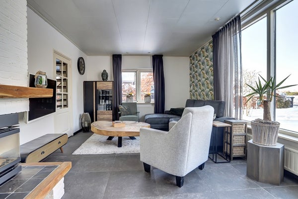 Ruime en lichte woonkamer met gashaard
