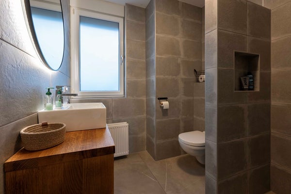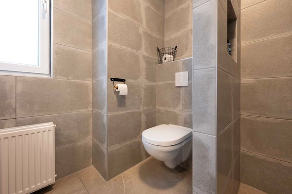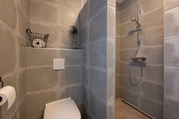 De badkamer ademt pure luxe, met een royale inloopdouche, eigentijds wastafelmeubel en een tweede toilet. Iedere ochtend fris beginnen of juist ontspannen eindigen doe je hier in stijl.