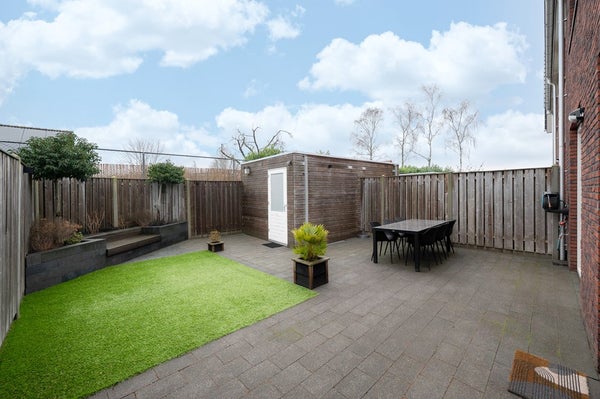 Zodra het zonnetje schijnt, ben jij de koning te rijk in je eigen achtertuin. Fraai aangelegd, voorzien van kunstgras (onderhoudsvriendelijk!), een groot terras, praktische berging én achterom. Zwoele zomeravonden, kindervoetjes in het gras of rustig een boek lezen in de zon; het kan allemaal. Alles is goed doordacht aangelegd, dus echt genieten zonder zorgen.