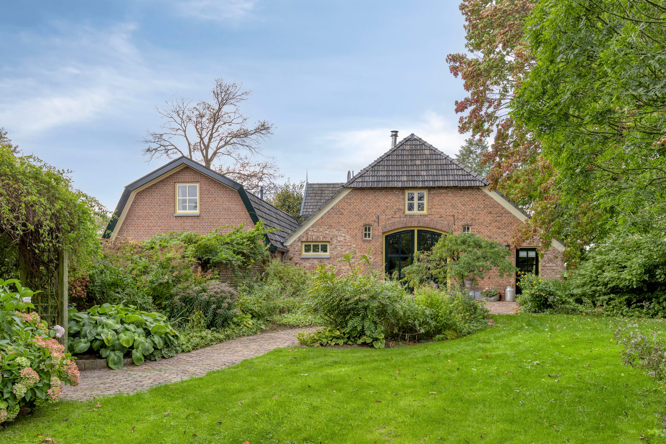 In het buitengebied van Zelhem staat "Den Olden Smid", een karakteristiek dubbel woonhuis. Dit unieke huis, dat bestaat uit twee zelfstandige woningen, biedt mogelijkheden voor generaties onder één dak of als werkruimte aan huis. Bij binnenkomst kom je in een ruime hal met toegang tot een royale badkamer, een slaapkamer en een tuingerichte woonkamer met een houtkachel. De ruime woonkeuken heeft authentieke elementen. Op de eerste verdieping zijn vier slaapkamers en een compacte badkamer. De tweede woning herbergt een praktische bijkeuken, woonkamer, en ook slaapkamers met veel bergruimte. De weelderige tuin omringt het huis, compleet met een terras en mogelijkheden voor moestuin en bomen. Het perceel van circa 2.300 m² ligt nabij de voorzieningen van Zelhem, ideaal voor wie landelijk wil wonen.
