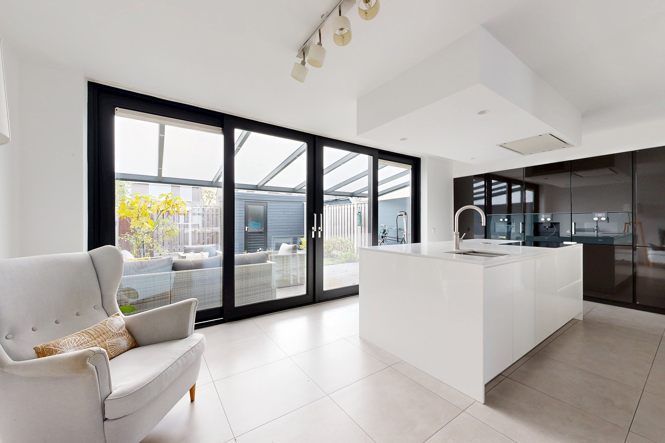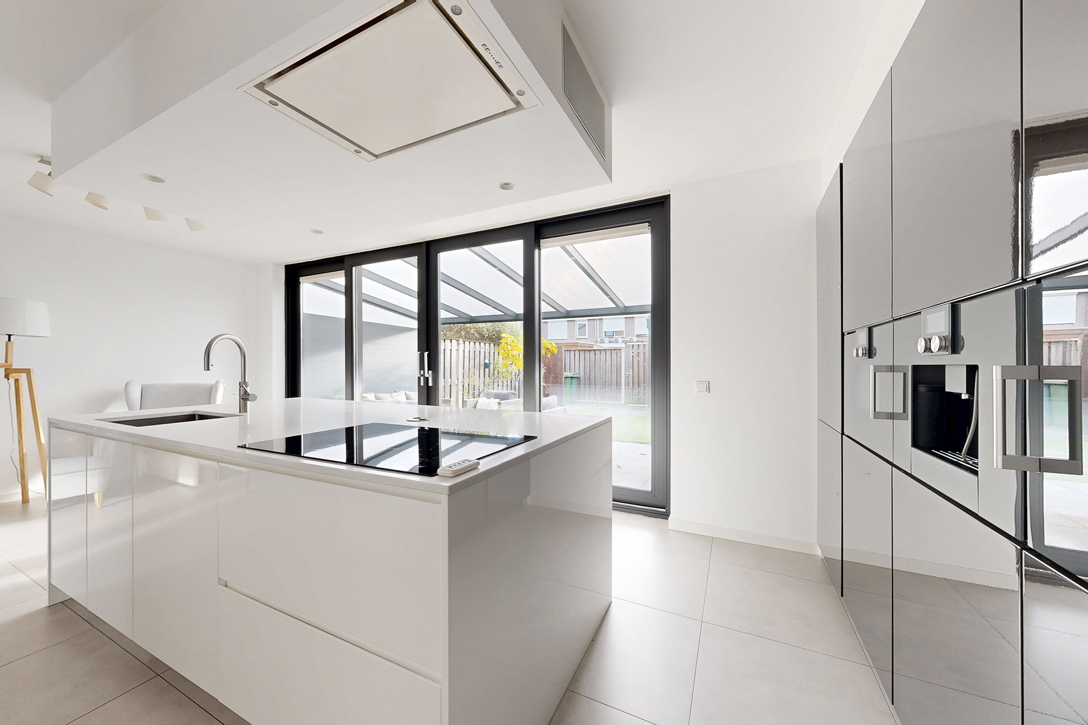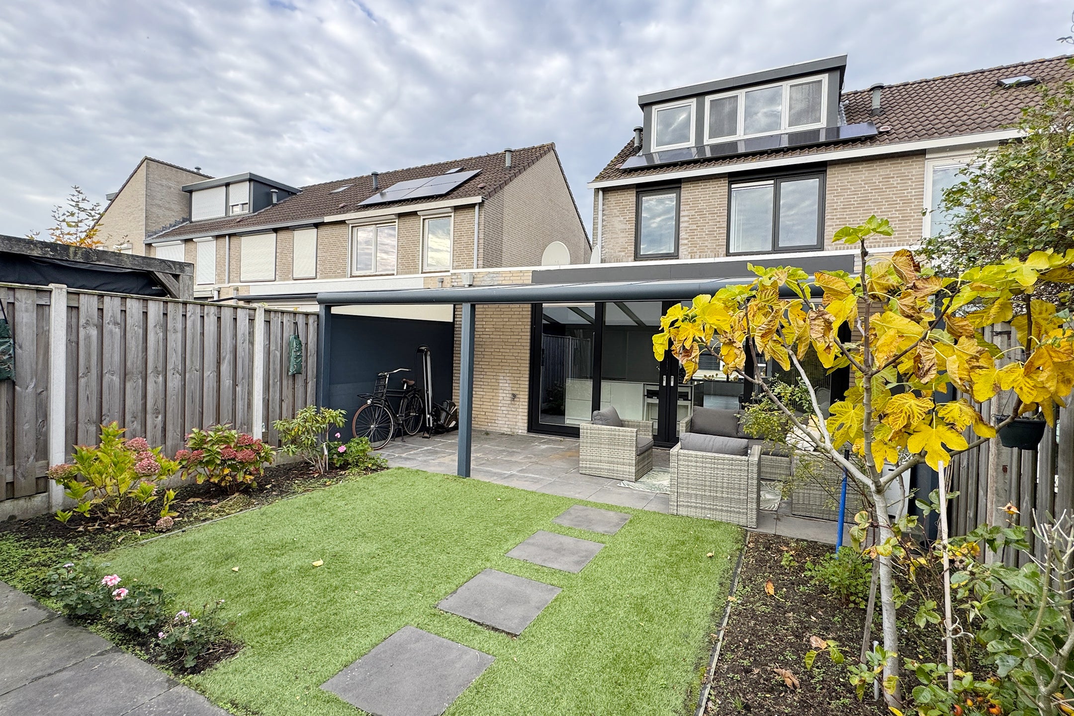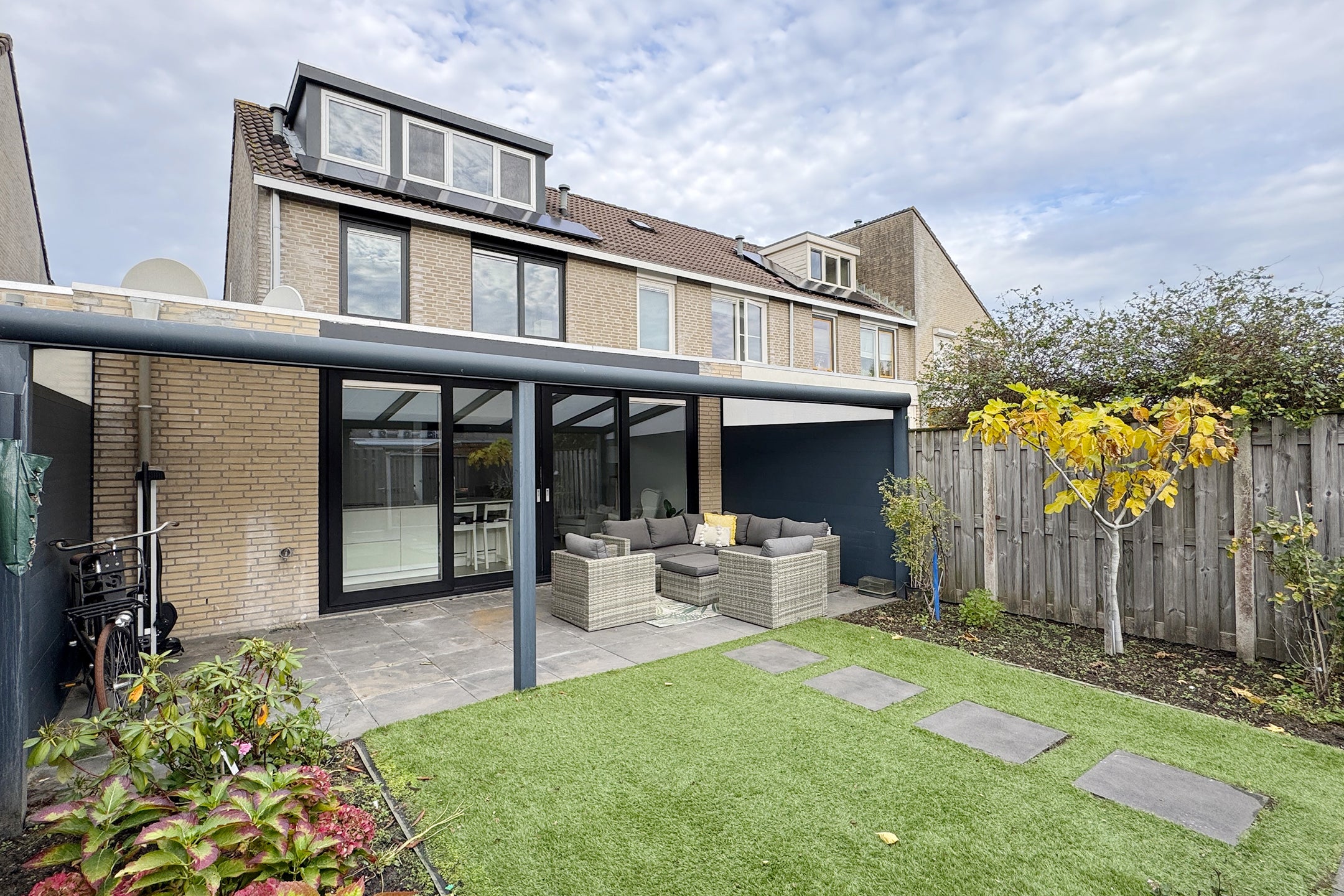 Deze verrassend ruime, instapklare eengezinswoning in een fijne woonwijk biedt een moderne sfeer en hoogwaardige afwerking. Bij binnenkomst kom je in de hal en vervolgens in de royale woonkamer met vloerverwarming en veel lichtinval door de grote raampartij. De stijlvolle keuken, voorzien van luxe inbouwapparatuur zoals een Gaggenau oven en inductiekookplaat, heeft directe toegang tot de onderhoudsvriendelijke achtertuin.