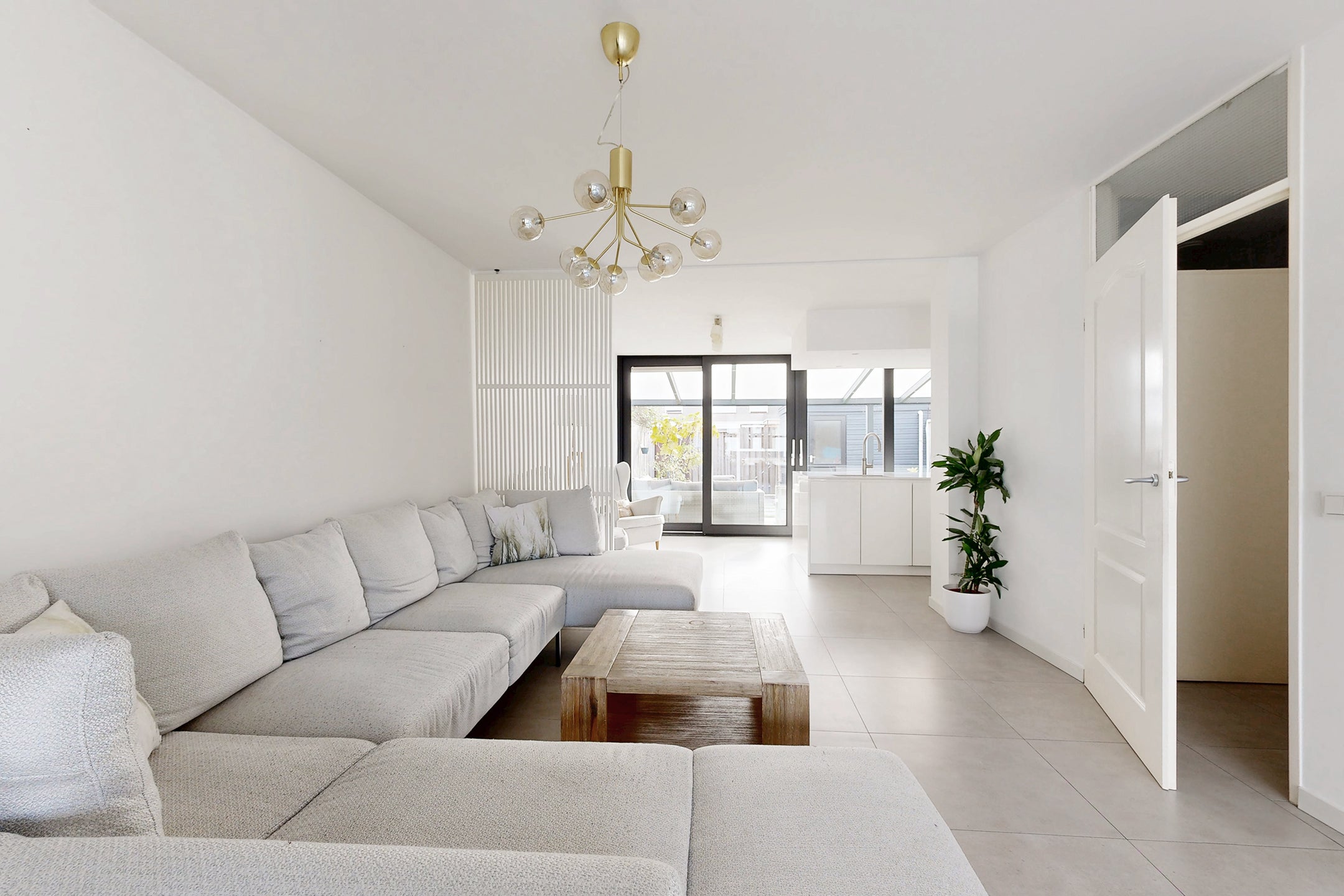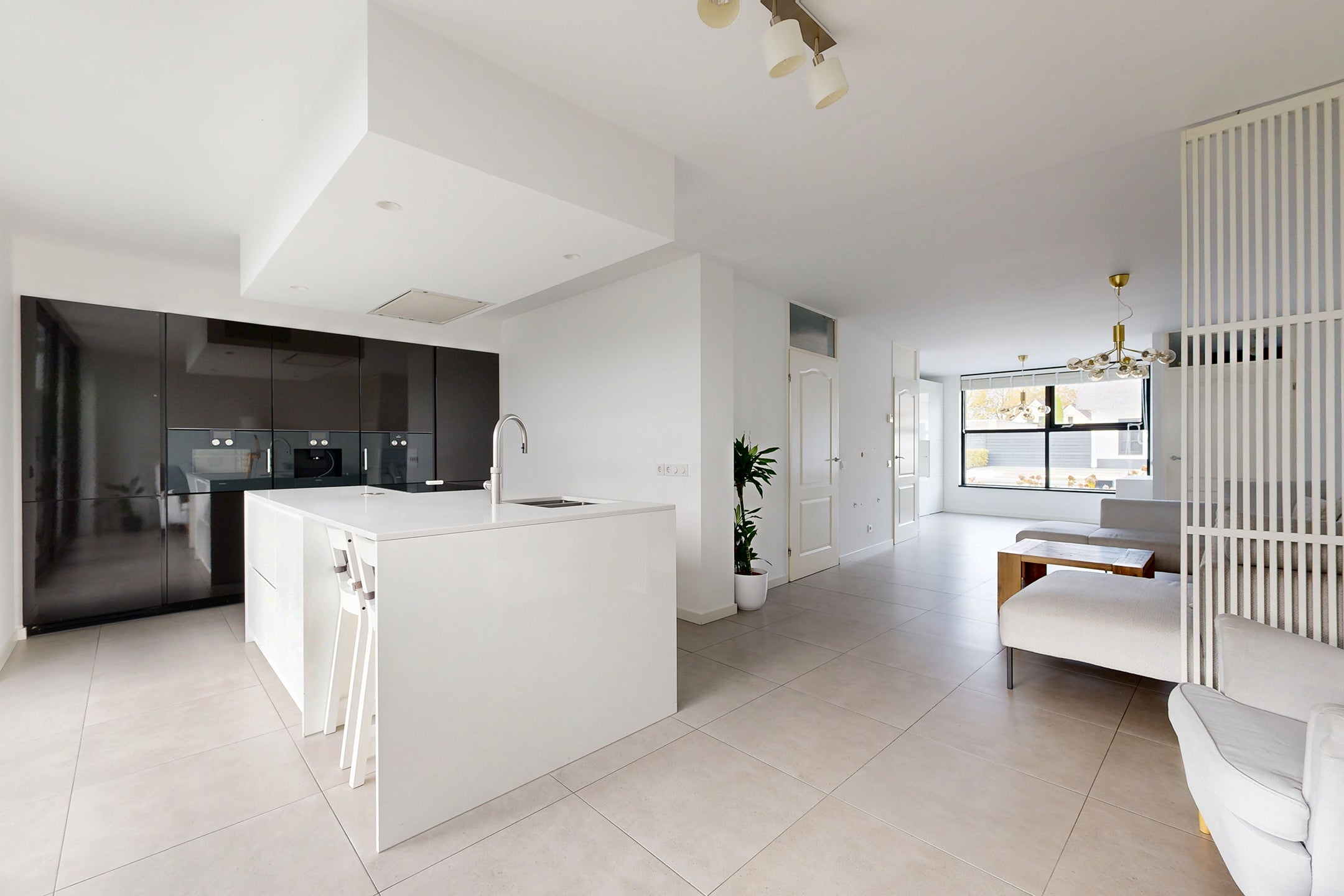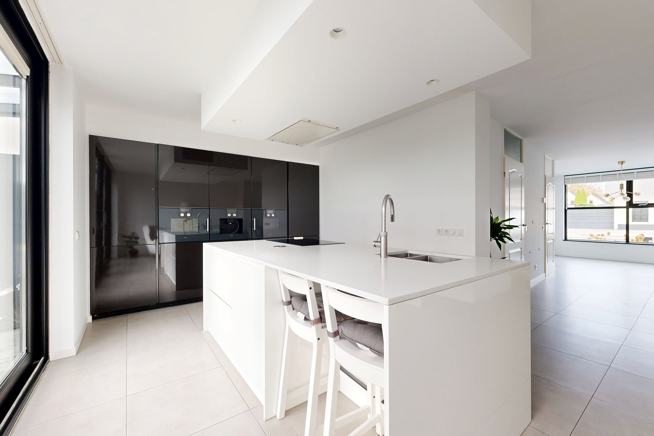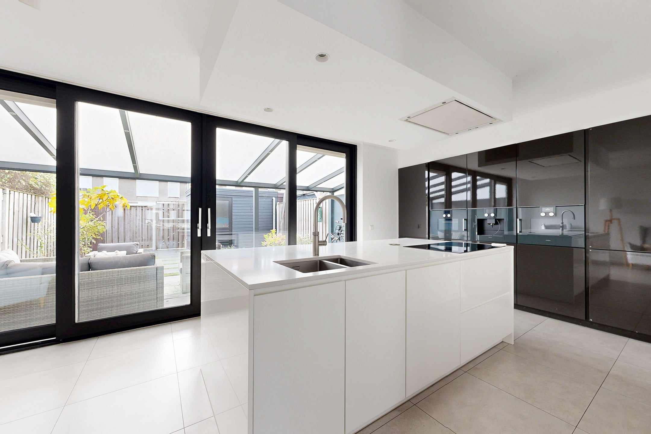 Deze verrassend ruime, instapklare eengezinswoning in een fijne woonwijk biedt een moderne sfeer en hoogwaardige afwerking. Bij binnenkomst kom je in de hal en vervolgens in de royale woonkamer met vloerverwarming en veel lichtinval door de grote raampartij. De stijlvolle keuken, voorzien van luxe inbouwapparatuur zoals een Gaggenau oven en inductiekookplaat, heeft directe toegang tot de onderhoudsvriendelijke achtertuin.