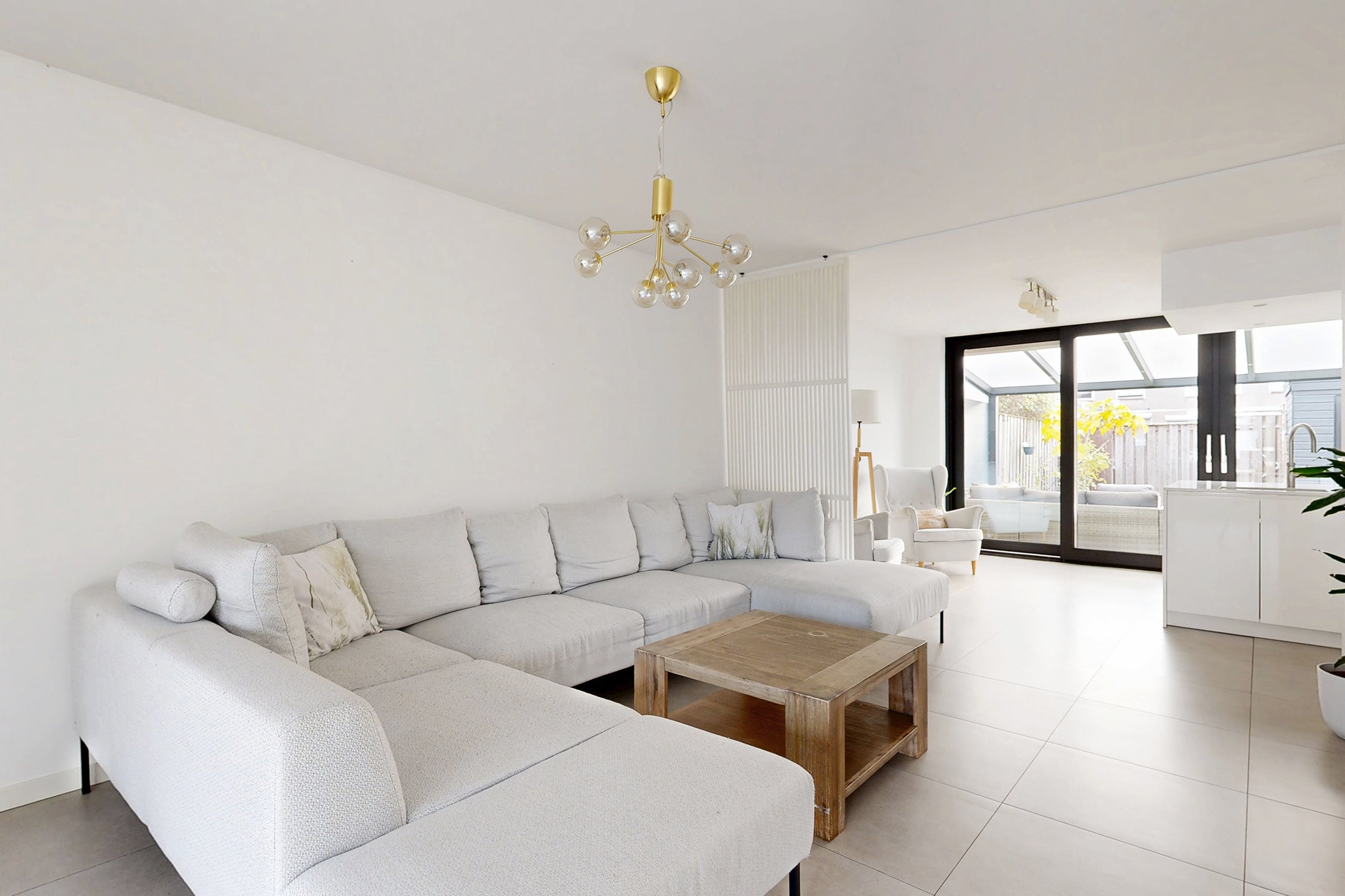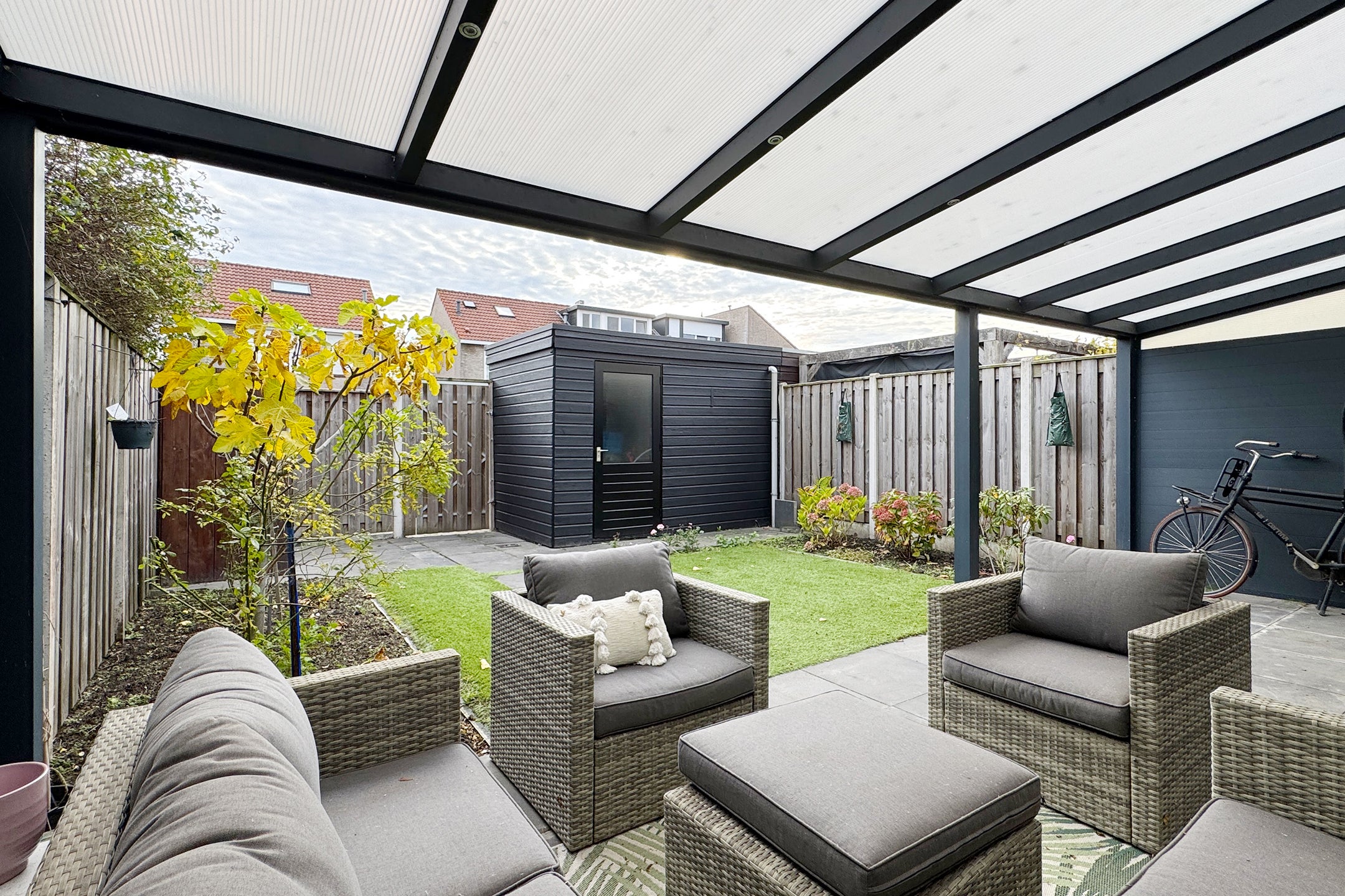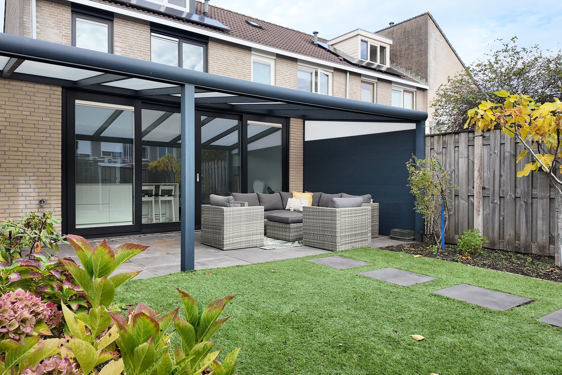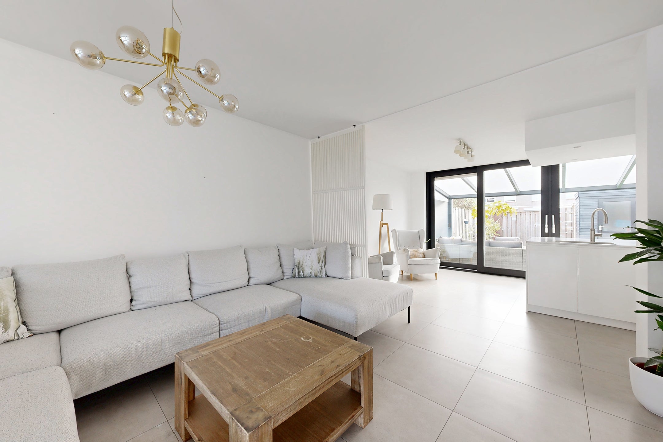 Deze verrassend ruime, instapklare eengezinswoning in een fijne woonwijk biedt een moderne sfeer en hoogwaardige afwerking. Bij binnenkomst kom je in de hal en vervolgens in de royale woonkamer met vloerverwarming en veel lichtinval door de grote raampartij. De stijlvolle keuken, voorzien van luxe inbouwapparatuur zoals een Gaggenau oven en inductiekookplaat, heeft directe toegang tot de onderhoudsvriendelijke achtertuin.