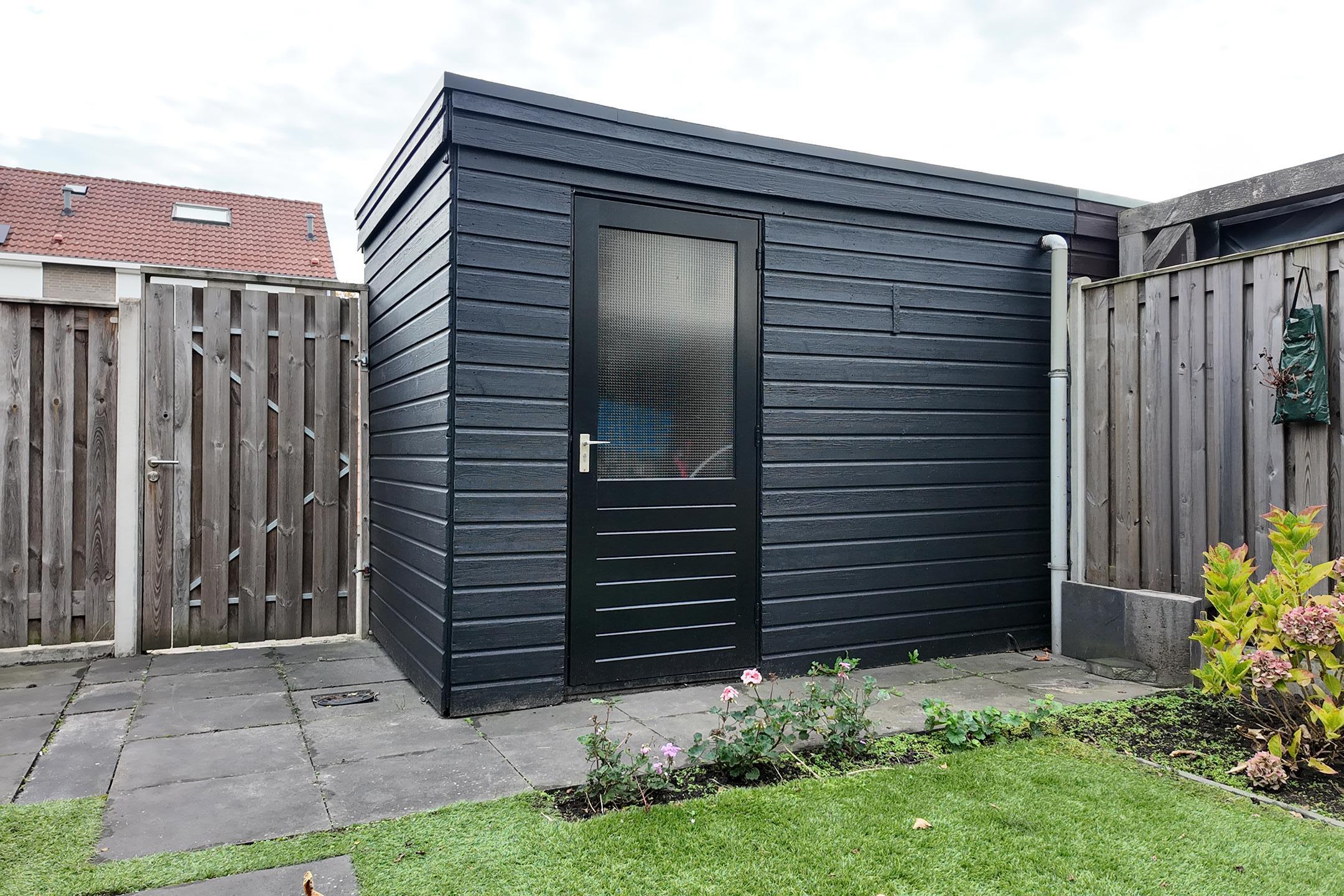 Op de eerste verdieping zijn twee ruime slaapkamers te vinden, met de optie voor een derde. De volledig betegelde badkamer beschikt over een inloopdouche, wastafel en toilet. De tweede verdieping biedt extra ruimte en licht dankzij een dakkapel. De tuin heeft een schuur met elektra en een gezellige overkapping. Met 121 m² woonoppervlakte en moderne voorzieningen zoals zonnepanelen en airco, is dit de perfecte woning.