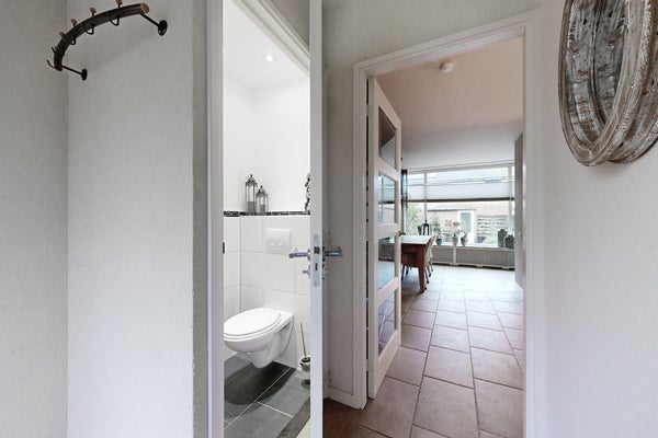 De indeling omvat op de begane grond de entree, hal met nieuwe meterkast, en een toilet. De woonkamer heeft een plavuizen vloer, en de keuken aan de achterzijde is uitgerust met moderne apparatuur. Op de eerste verdieping bevinden zich drie slaapkamers en de badkamer. De tweede verdieping herbergt een voorzolder met bergruimte en een slaapkamer. De onderhoudsvriendelijke achtertuin, op het westen gericht, heeft een groot terras en toegang tot een berging.