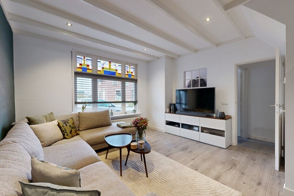 Deze fijne woning aan de rand van Zevenbergen biedt een ideale combinatie van gezelligheid en betaalbaar wonen. Op loopafstand van het station en het centrum verwelkomt de hal je, die leidt naar de lichte woonkamer, praktische keuken en trap naar de eerste verdieping. De woonkamer, in een speelse L-vorm, heeft een comfortabele zithoek en eetgedeelte, met veel lichtinval door het grote raam en stijlvolle glas-in-lood elementen. De keuken is uitgerust met inbouwapparatuur en biedt toegang tot de zonnige achtertuin met een overkapping en schuur. Op de eerste verdieping vind je twee ruime slaapkamers, waarvan één met airconditioning. De moderne badkamer is voorzien van een ligbad en douche. Met een woonoppervlakte van 92 m² en twee slaapkamers is het huis ideaal voor starters.