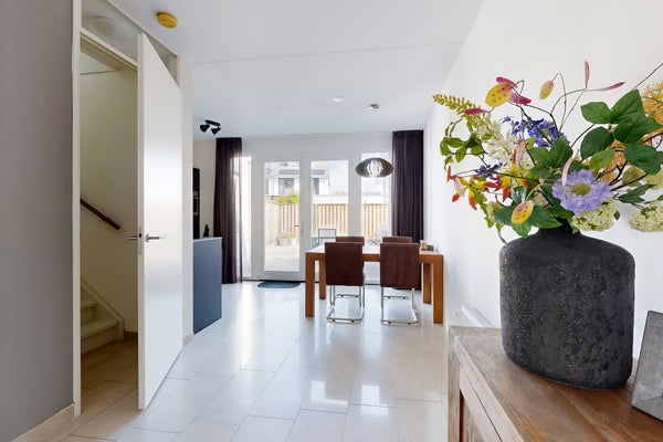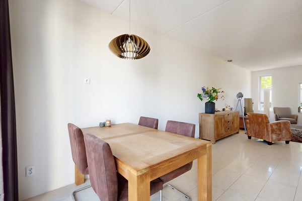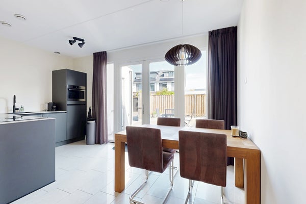 Deze ruime en goed onderhouden 2-onder-1-kapwoning ligt aan een rustig hofje met vrij uitzicht over groen. Hier hebben (jong) gezinnen alles binnen handbereik: spelen op straat, naar school en snel boodschappen doen. De lichte hal biedt toegang tot de garage, de sfeervolle woonkamer met vloerverwarming, en de moderne open keuken, die drie jaar oud is en voorzien van luxe apparatuur. Op de bovenverdieping vind je drie ruime slaapkamers en een luxe badkamer met inloopdouche. De zolder herbergt een vierde kamer. Buiten geniet je van een onderhoudsvriendelijke tuin en een eigen oprit. De woning, gebouwd in 2012 en met energielabel A, is voorzien van kunststof kozijnen en rolluiken. Hier voel je je meteen thuis!