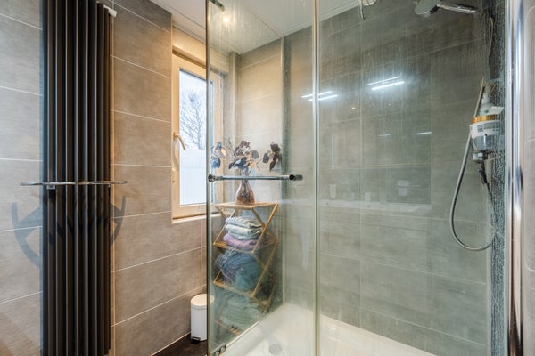 Op de eerste verdieping zijn drie slaapkamers en een moderne badkamer met inloopdouche en dubbele wastafel te vinden. De woning beschikt over kunststof kozijnen met isolerende beglazing, een verwarmde veranda, en een rustige ligging met uitzicht. Dit is een thuis waarin je het hele jaar door kunt genieten van je omgeving.
