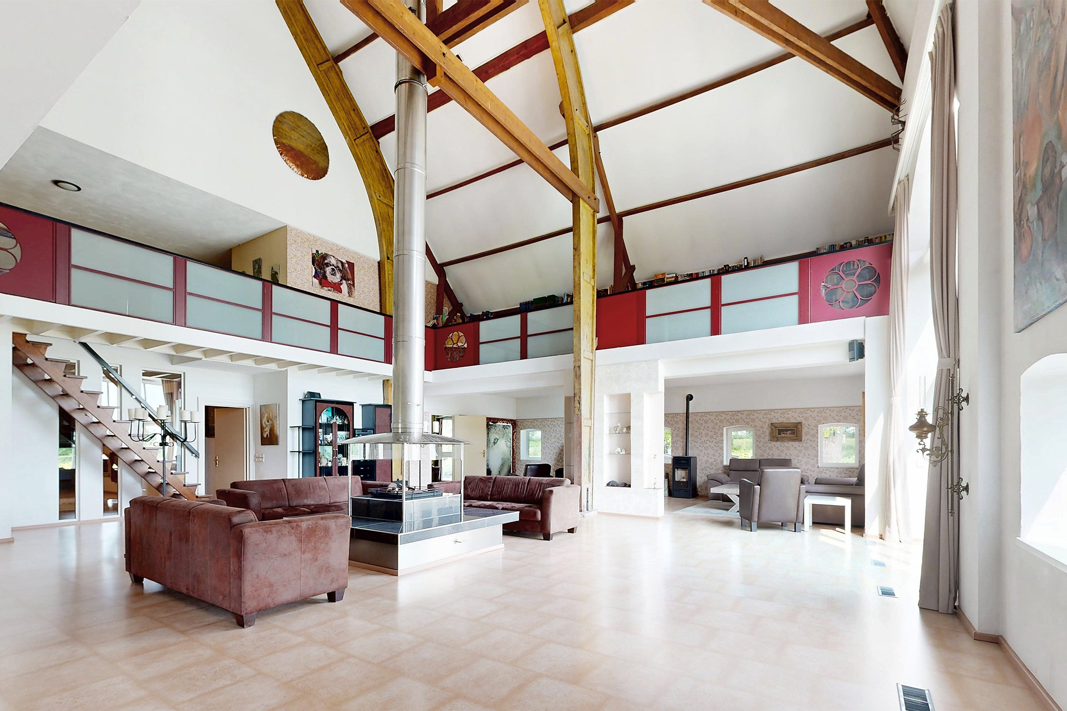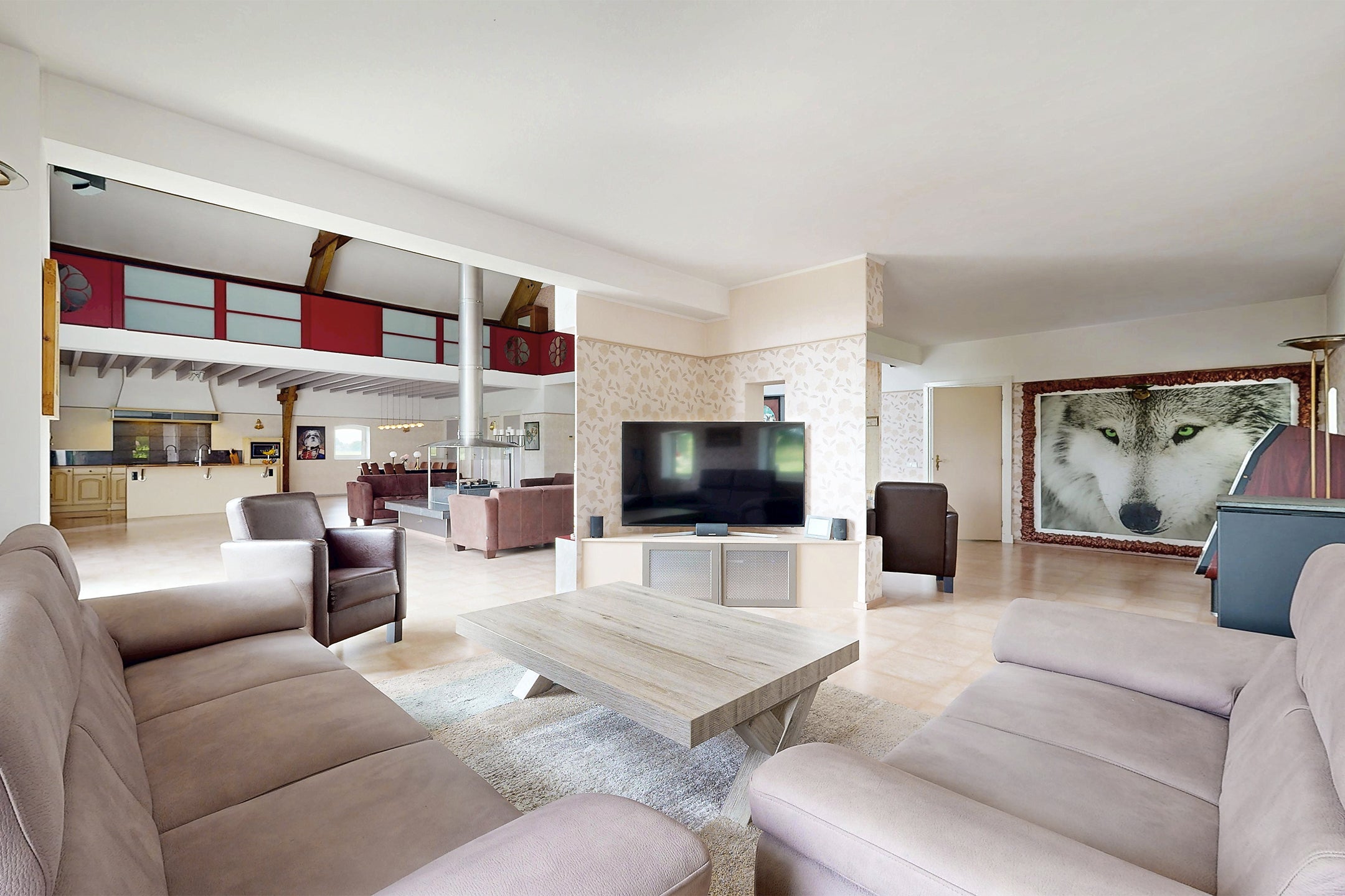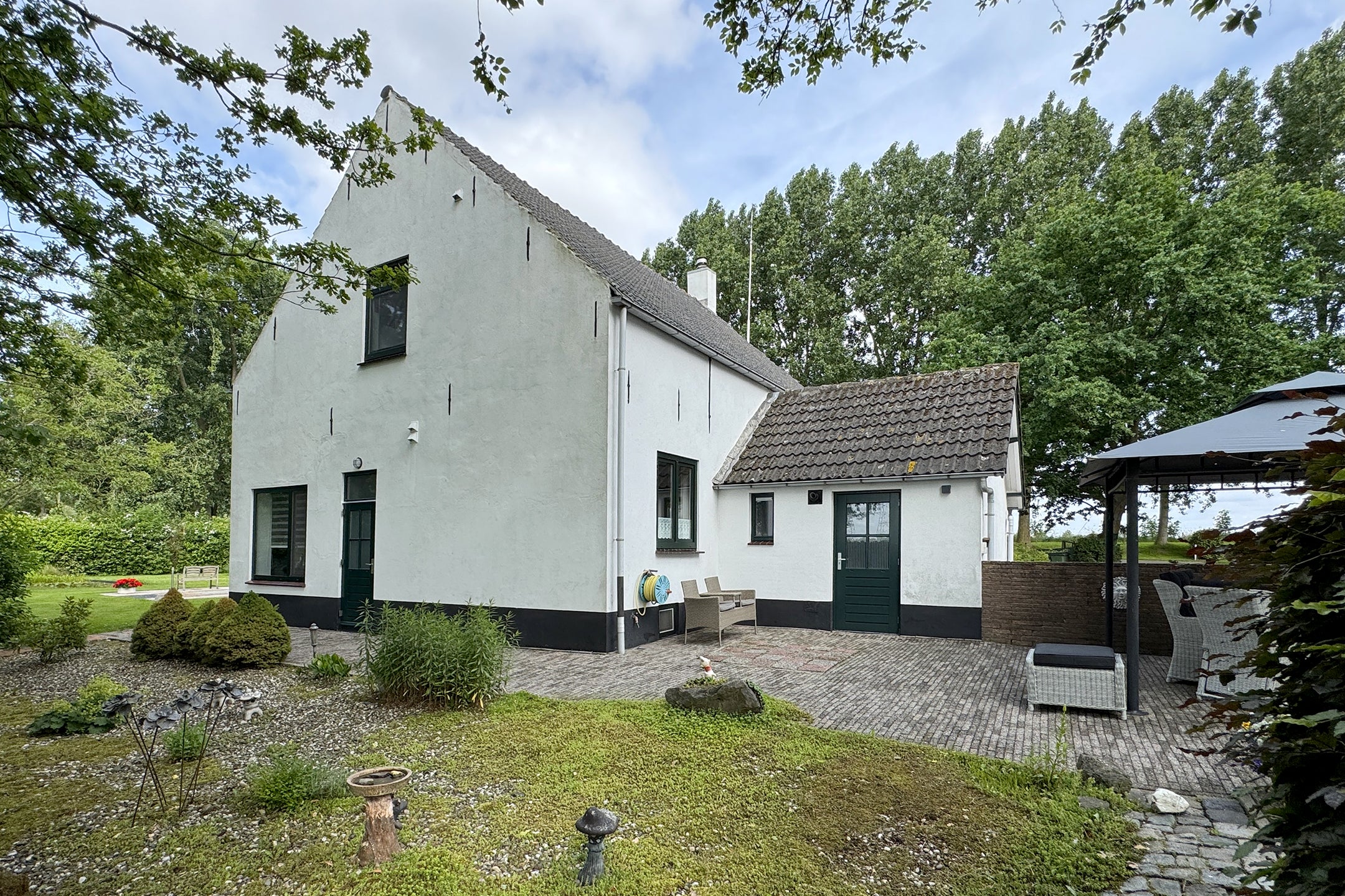 Welkom bij deze unieke woonboerderij met twee imposante woningen op een royale grond van 10.012 m², met een gezamenlijke woonoppervlakte van 873 m². De eerste woning biedt circa 690 m² aan ruimte, met drie slaapkamers, twee badkamers, een inpandige schuur en een complete recreatieruimte. De grote woonkamer met een plafondhoogte van 11 meter en een open haard zorgt voor een speciaal gevoel van ruimte en comfort. De tweede woning, gelegen op een perceel van 4.052 m², beschikt over een sfeervolle woonkamer, woonkeuken, drie slaapkamers en biedt volop mogelijkheden voor hobby en opslag. Beide woningen zijn omgeven door prachtige tuinen en bieden privacy en een landelijke sfeer, met voorzieningen en uitvalswegen dichtbij.