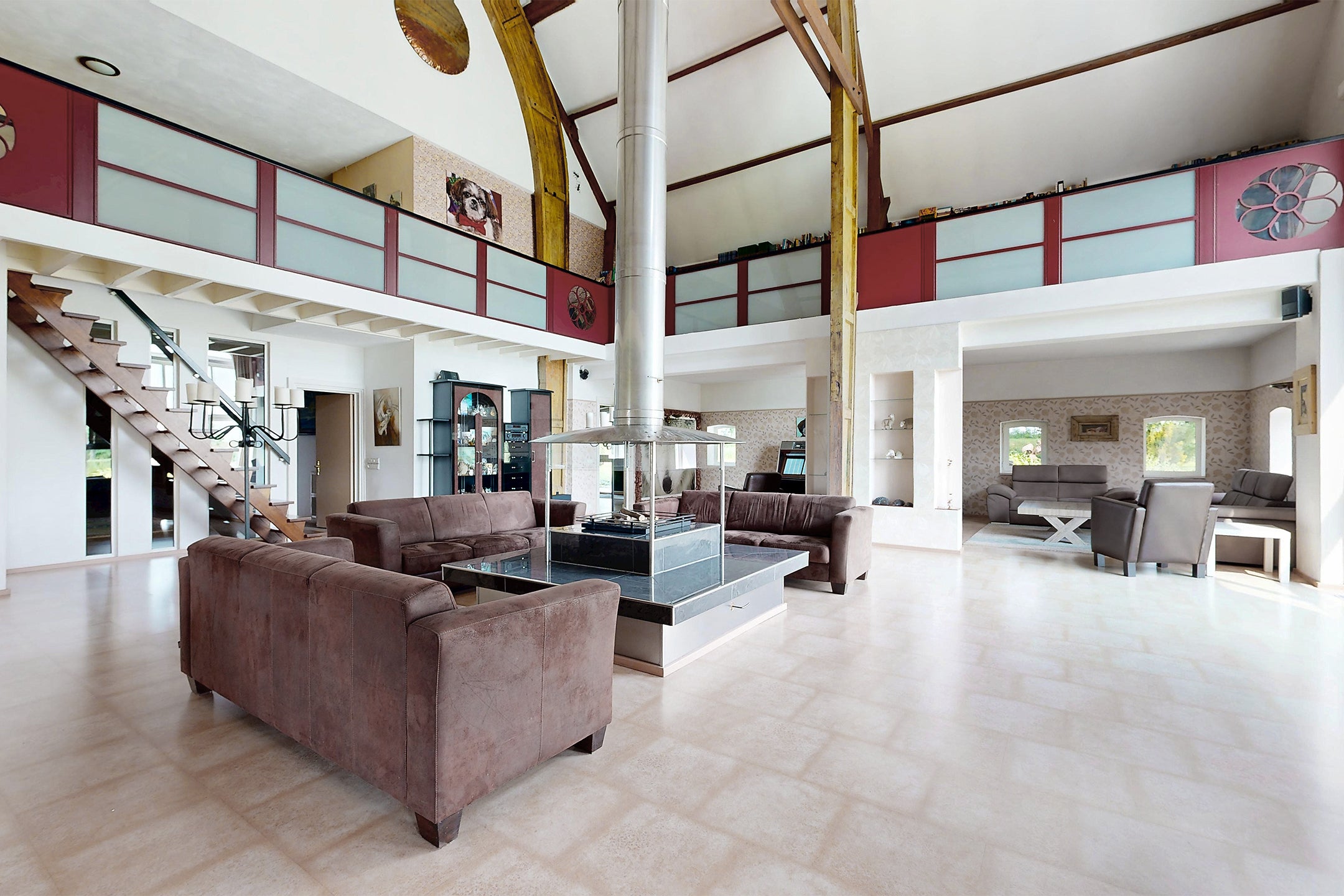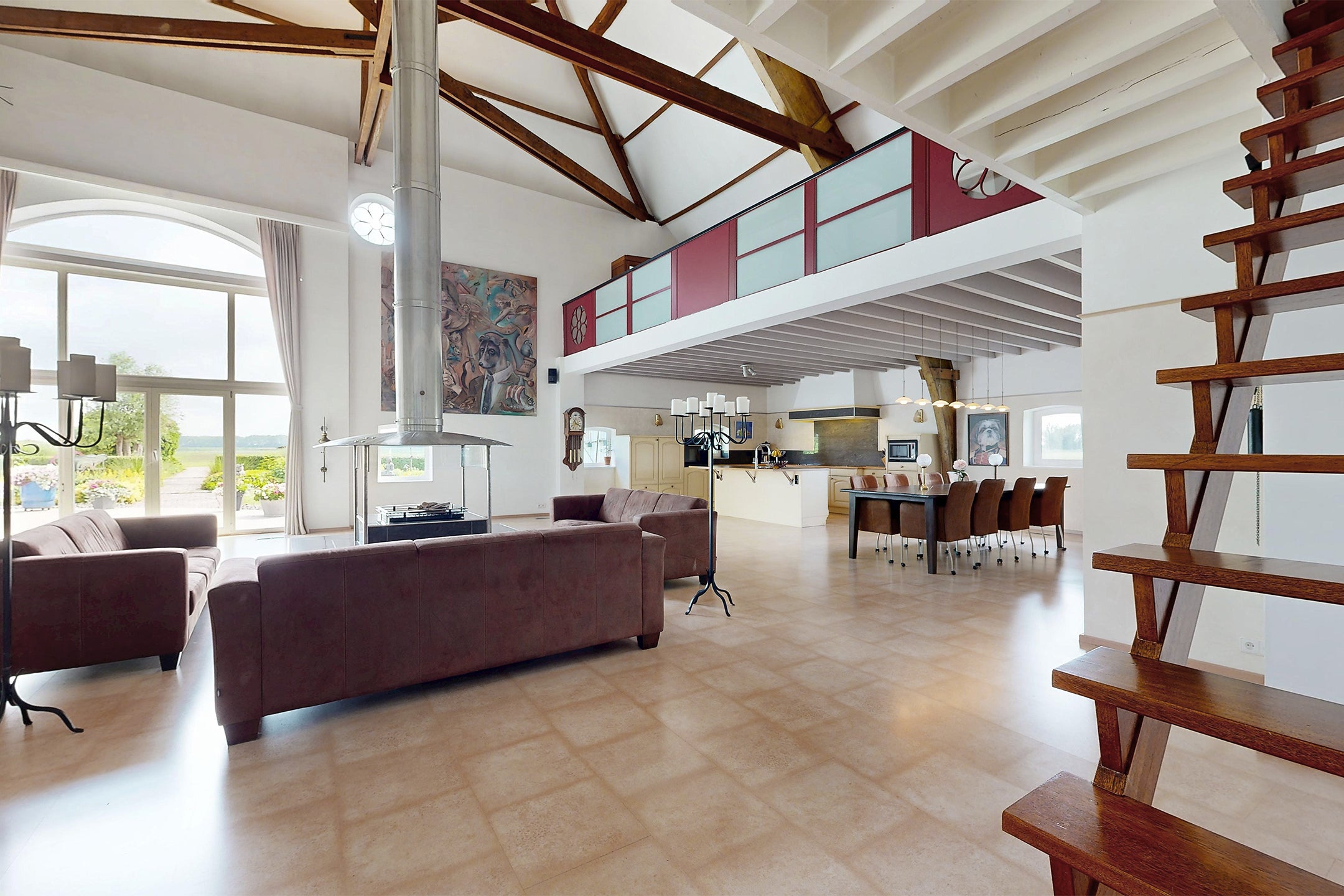 Deze indrukwekkende woonboerderij biedt een woonoppervlak van circa 690 m² en staat op een perceel van 5.960 m². De riante woonkamer heeft een hoogte van ruim 11 meter en is voorzien van een open haard en grote raampartijen die veel lichtinval bieden. De begane grond bevat drie ruime slaapkamers, twee badkamers, een bijkeuken, en een inpandige schuur van 80 m². De open keuken is uitgerust met moderne apparatuur zoals een Quooker en vaatwasser. Boven is een recreatieruimte met een bar en biljarttafel. De charmante tuin met terrassen en waterpartijen biedt volop privacy. Gelegen in een rustige, landelijke omgeving, zijn uitvalswegen en het NS-station dichtbij. Dit unieke huis biedt de mogelijkheid tot dubbele bewoning. Maak een afspraak voor een bezichtiging.