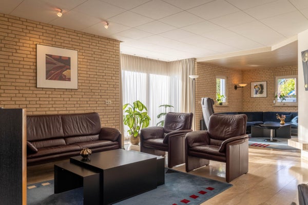 Deze unieke vrijstaande woning, gebouwd in 1993, biedt energiezuinig en levensloopbestendig wonen op een royaal perceel van 1.015 m². Met een woonoppervlakte van ca. 330 m² en een volledig bruikbaar souterrain, is er veel flexibiliteit in gebruik. De indeling omvat een royale woonkamer, keuken met inbouwapparatuur, bijkeuken, en een inpandige garage, ideaal voor een extra slaapkamer of werkruimte. Op de eerste verdieping zijn vijf slaapkamers te vinden, waaronder een met balkon en een stijlvolle badkamer. De prachtig aangelegde tuin biedt rust en privacy, compleet met een overkapping. Deze woning, met energielabel A en 18 zonnepanelen, is perfect voor gezinnen en mensen die werken aan huis.