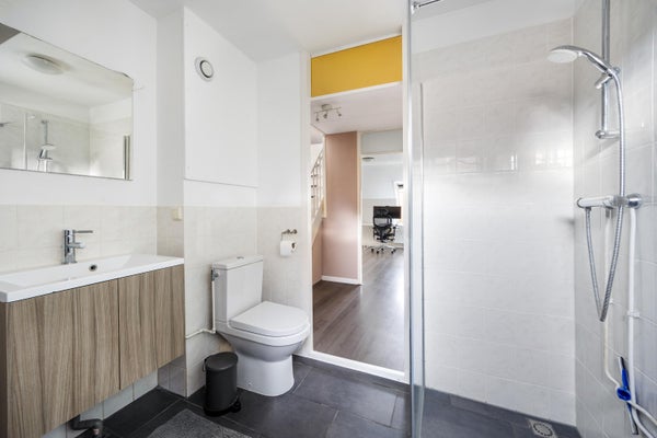 • De tussenwoning heeft een woonoppervlakte van 111 m² en beschikt over 5 kamers, waarvan 4 slaapkamers;