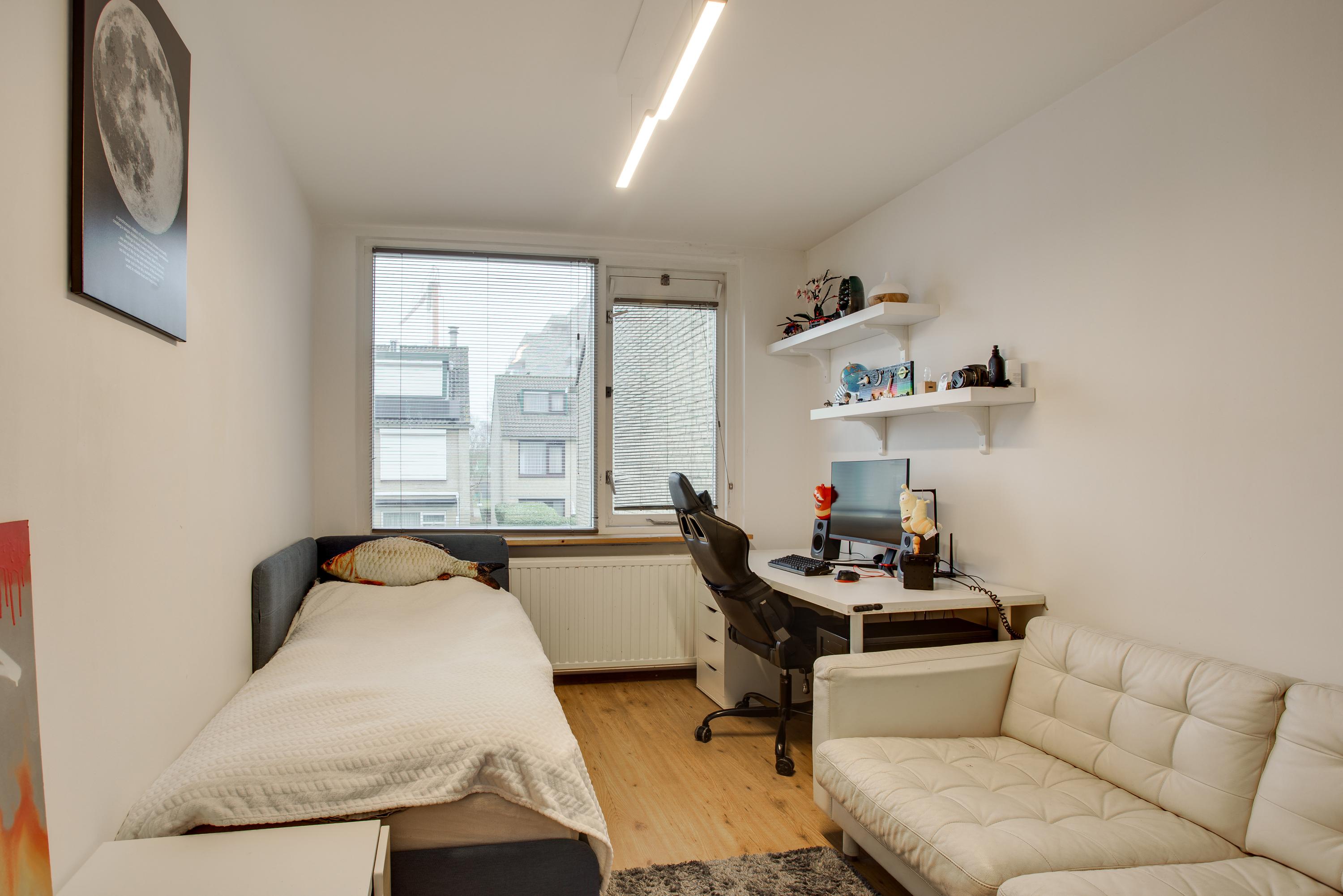 In het groene Meerzicht staat een goed onderhouden tussenwoning met vijf kamers, ideaal voor gezinnen. De woning, gebouwd in 1975, heeft een moderne keuken uit 2024 en een badkamer uit 2025, wat zorgt voor hedendaags comfort. De indeling omvat een lichte woonkamer, praktische keuken, drie slaapkamers en een extra kamer op de tweede verdieping. De zonnige achtertuin op het zuidwesten is perfect om te genieten van de zon, en is voorzien van een berging en overkapping. De woning ligt dicht bij groenvoorzieningen, winkels, scholen en openbaar vervoer, waardoor u rustig woont met alles binnen handbereik. Met een woonoppervlakte van 107 m² en een perceel van 112 m² biedt dit huis genoeg ruimte voor het hele gezin.