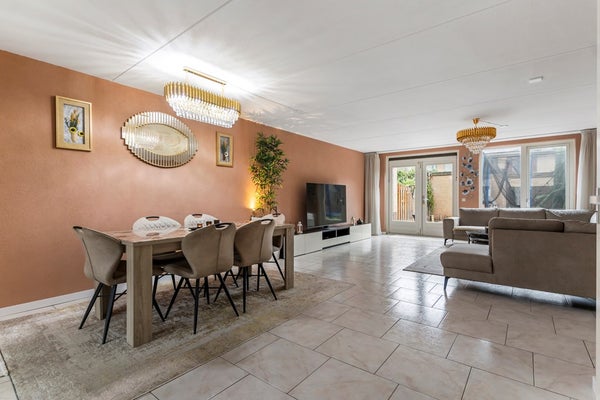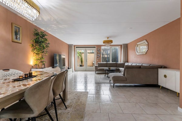 Bij binnenkomst ervaar je direct de prettige sfeer van de woning. De ruime en lichte woonkamer biedt volop leefruimte voor een gezellige zithoek en een royale eettafel. Dankzij de open indeling staat de woonkamer in directe verbinding met de functionele half open keuken.