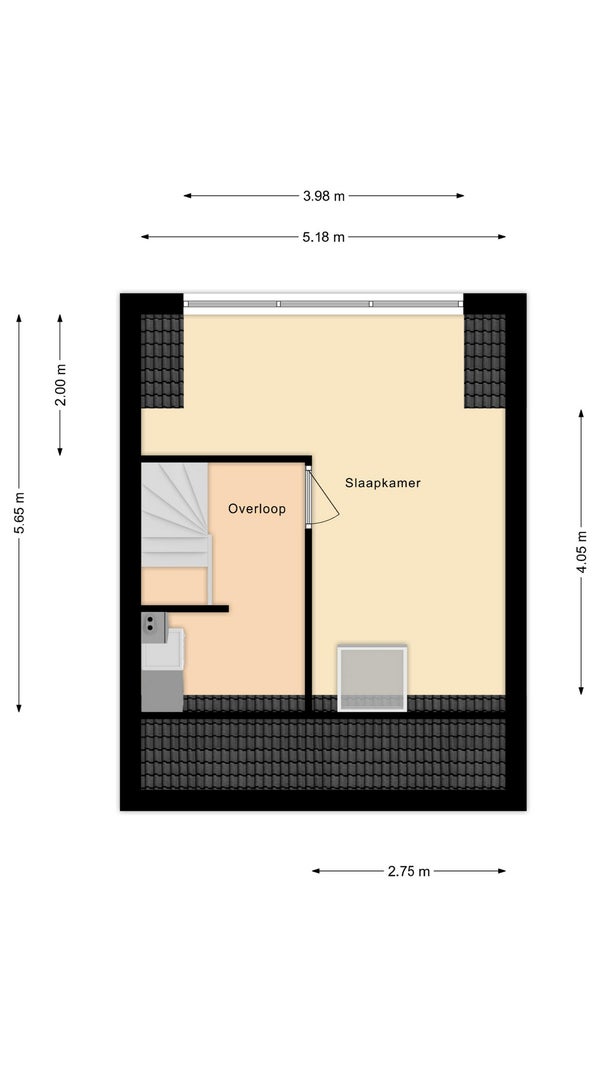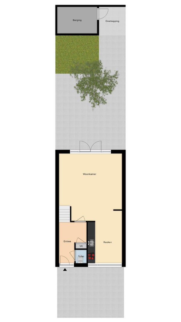 - Aanwezig (34 m², gelegen op het noorden)