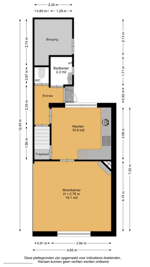 - De tussenwoning heeft een woonoppervlakte van 68 m² en beschikt over 3 kamers, waarvan 2 slaapkamers;