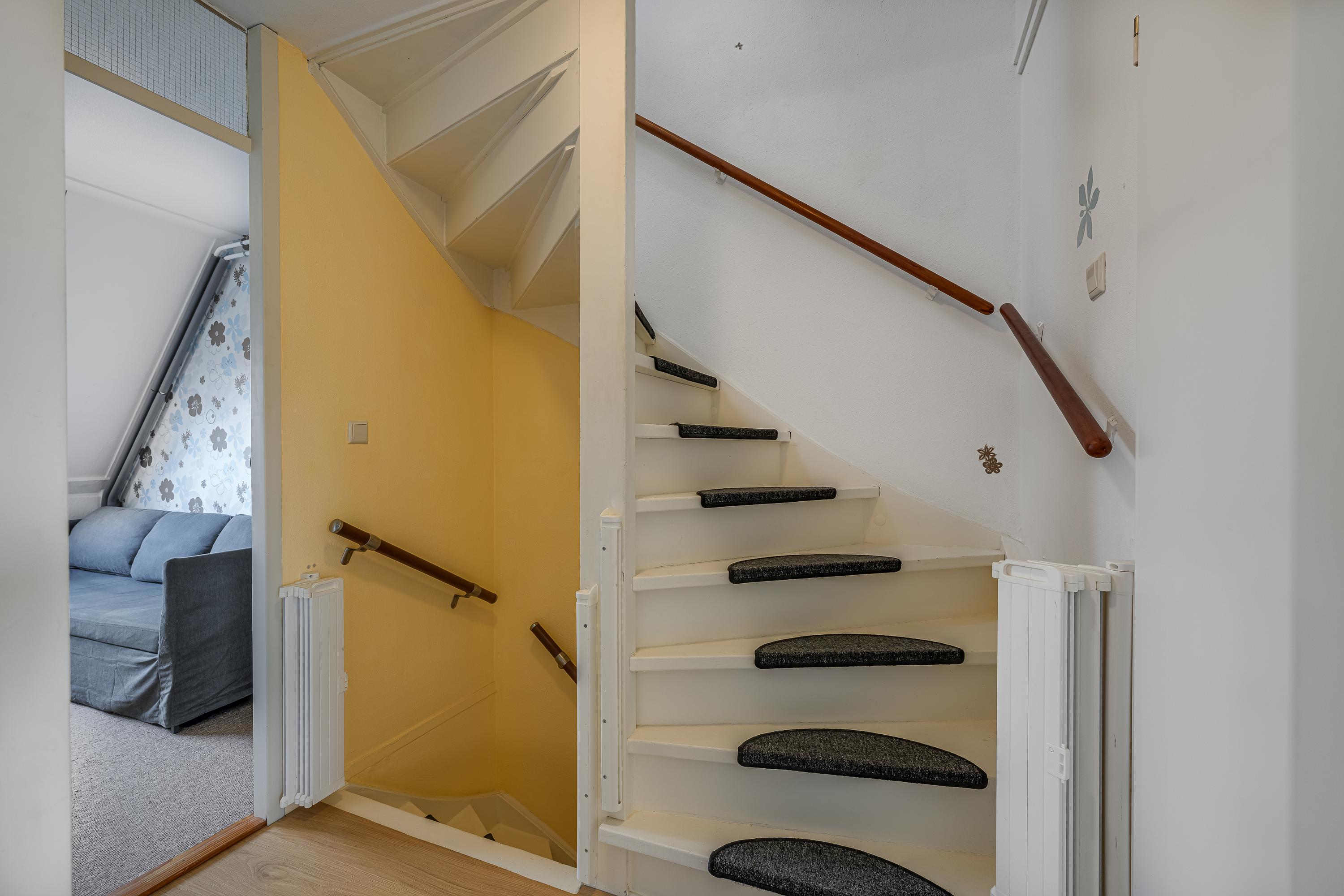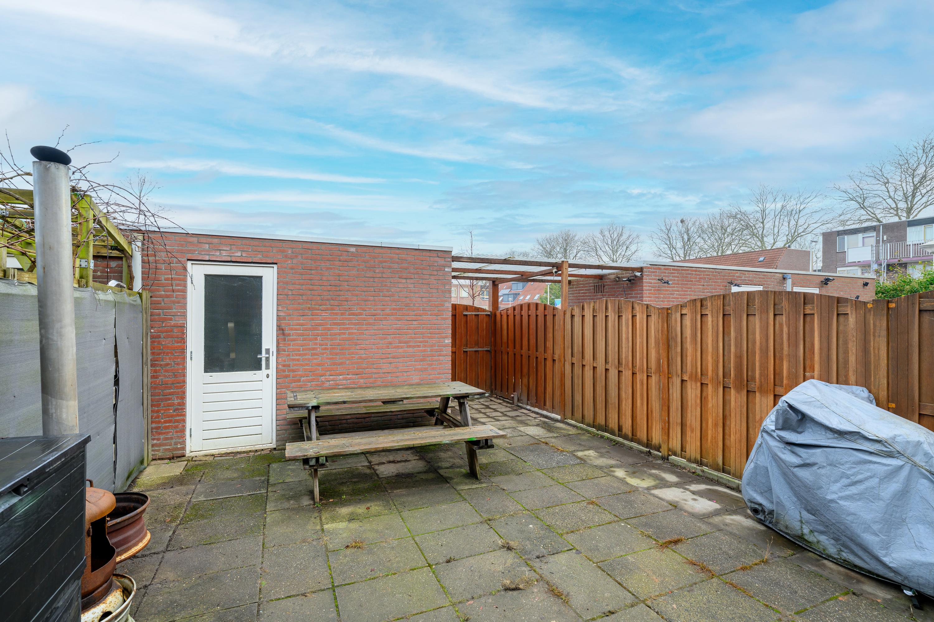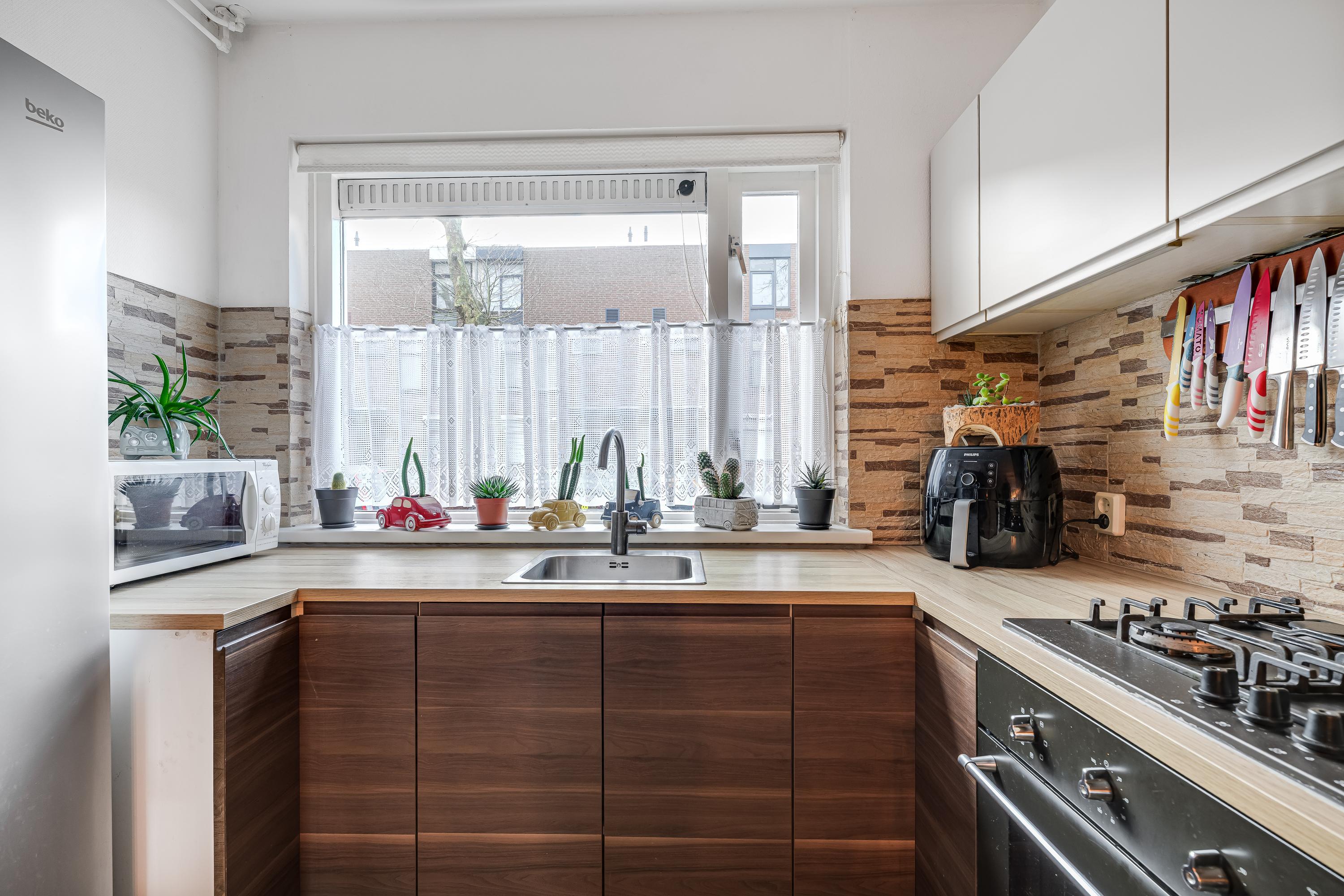 De indeling is functioneel: op de begane grond is er een lichte woonkamer met een open keuken, en vanuit hier is de diepe noordgerichte achtertuin toegankelijk. Deze tuin heeft een overkapping en een berging voor extra opslag. Op de eerste verdieping zijn drie slaapkamers en een praktisch ingerichte badkamer. De tweede verdieping heeft een ruime slaapkamer en een aparte wasruimte. Dit huis is voorzien van een cv-installatie en is gedeeltelijk gestoffeerd.