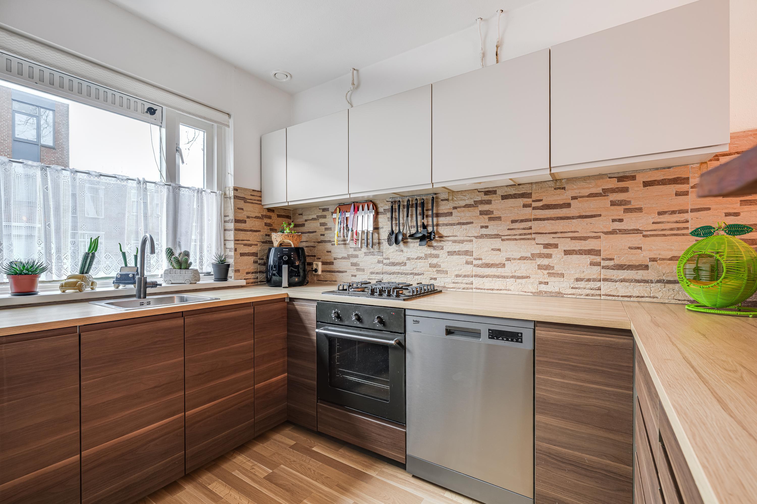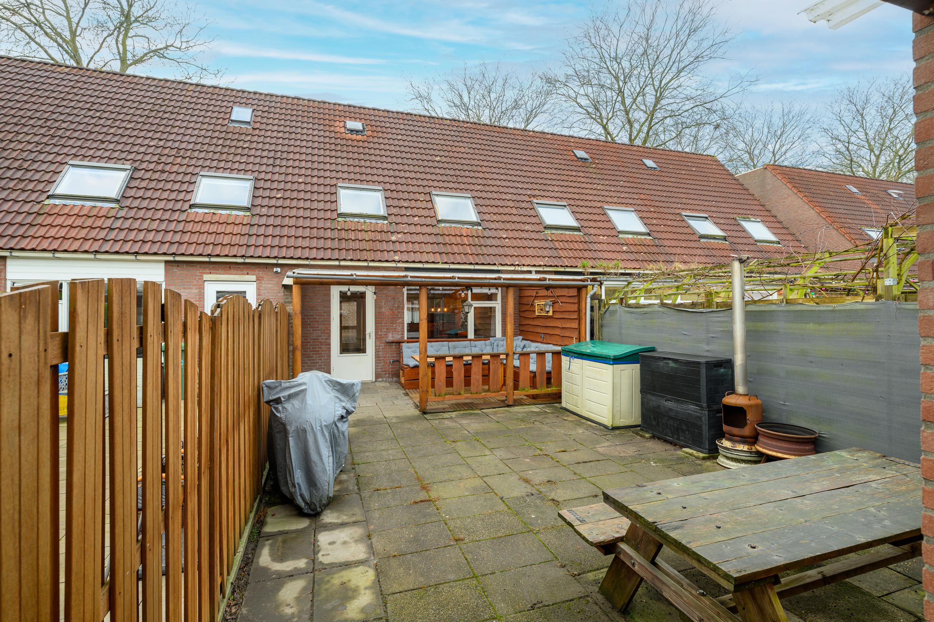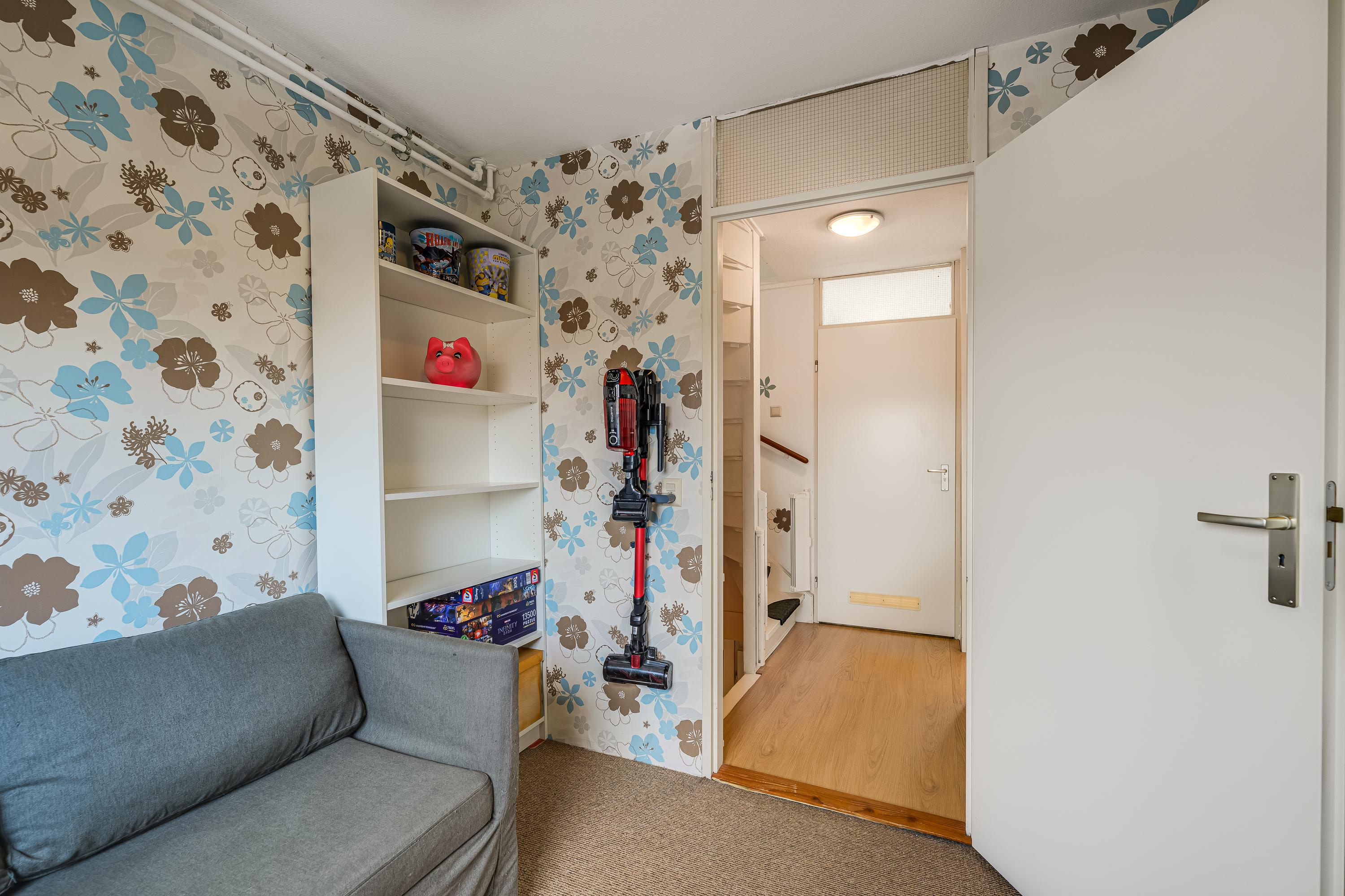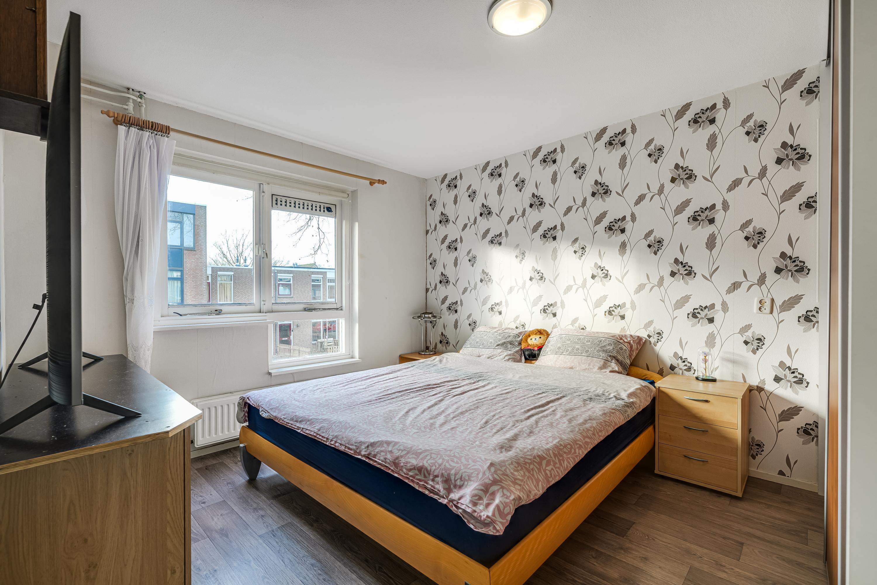 De indeling is functioneel: op de begane grond is er een lichte woonkamer met een open keuken, en vanuit hier is de diepe noordgerichte achtertuin toegankelijk. Deze tuin heeft een overkapping en een berging voor extra opslag. Op de eerste verdieping zijn drie slaapkamers en een praktisch ingerichte badkamer. De tweede verdieping heeft een ruime slaapkamer en een aparte wasruimte. Dit huis is voorzien van een cv-installatie en is gedeeltelijk gestoffeerd.
