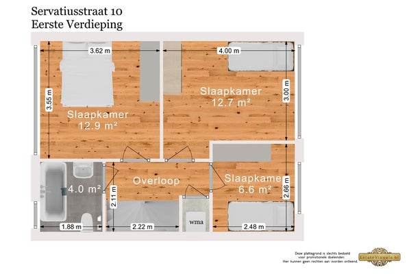 - De tussenwoning heeft een woonoppervlakte van 112 m² en beschikt over 5 kamers, waarvan 4 slaapkamers;