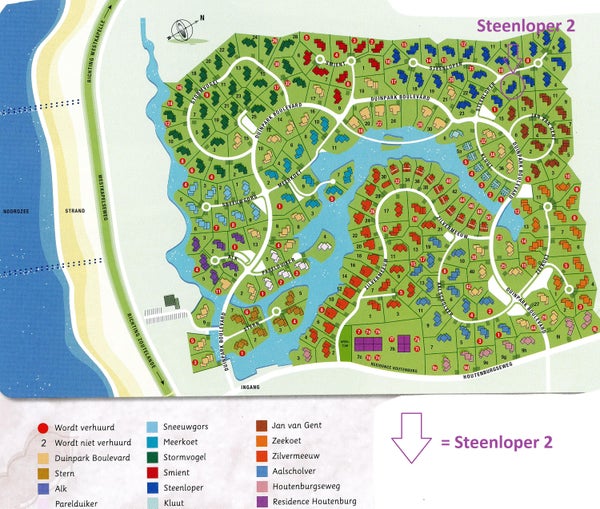 In het recreatiepark “Duinpark Het Kustlicht”, op enkele minuten lopen van het strand en het dorp, staat deze royale recreatievilla (type Duinroos, ±1996) te koop. Gelegen op een rustige plek, omringd door groen, op een kavel van 661m² eigen grond. Bij binnenkomst via een groene laan komt u in een gezellige hal met garderobekast en toilet. De sfeervolle woonkamer (±32m²) heeft een gaskachel en schuifpuien naar het terras op het zuidwesten, wat zorgt voor optimale privacy. De open keuken is voorzien van inbouwapparatuur. Er zijn 3 slaapkamers (±14m²/±11m²/±7m²), waarvan twee met toegang tot het terras en één met een moderne badkamer met whirlpool. Een tweede badkamer biedt douche en toilet. Boven is er een ruime vide. Deze villa heeft een inhoud van ±490m³, een woonoppervlakte van ±115m², en is goed geïsoleerd. De tuin biedt diverse zitjes en parkeren is mogelijk op eigen perceel.