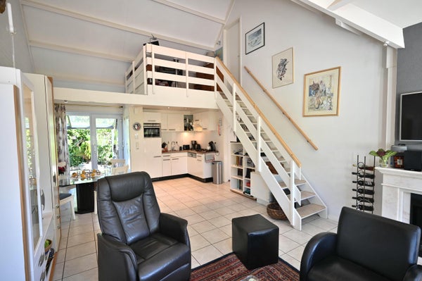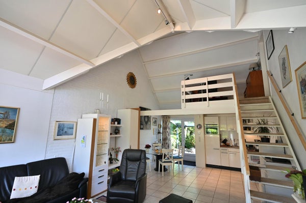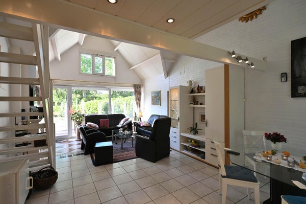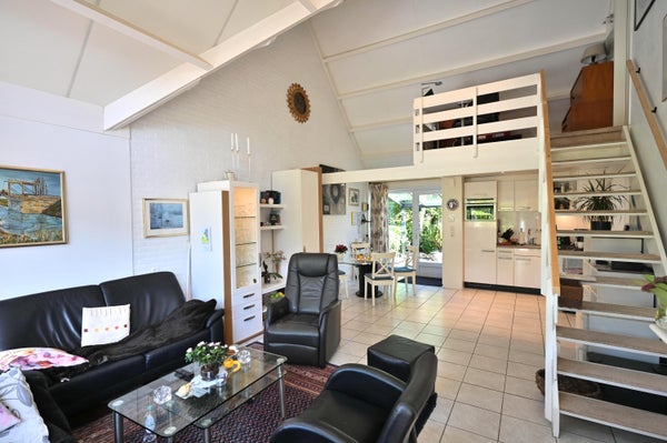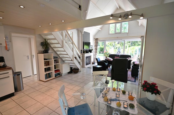Located in the Kustlicht 1 bungalow park, near the beach and village, is the well-maintained recreation house named "Het Knusperhuis." This single-family home features 3 bedrooms and three attached storage rooms, plus a garden shed. On the ground floor, you enter through a covered entrance into the open kitchen equipped with appliances including a stove, oven, dishwasher, and separate freezer. The spacious living room has an electric fireplace, leading to a south-facing terrace with a beautifully landscaped garden, protected by glass windbreaks. The floor also offers two large bedrooms, a modern bathroom, and a separate toilet. The first floor can be accessed via a wooden staircase, leading to a loft area and the third bedroom. The property enjoys optimal privacy and includes multiple terraces for summer evenings.
