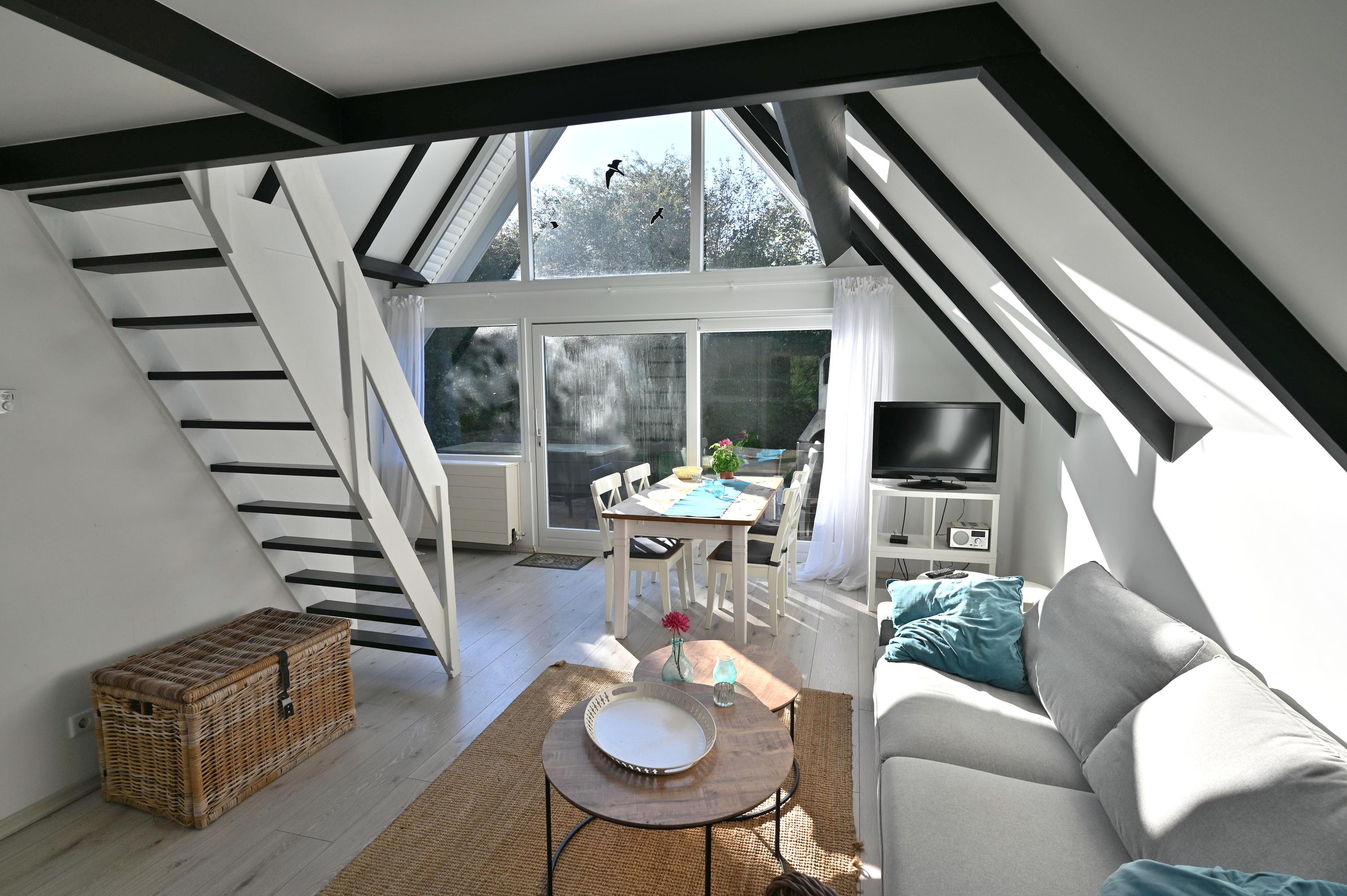 Stroming 22 in Zoutelande is gelegen in het bungalowpark Kustlicht 1, dicht bij het strand en het dorp. Dit goed onderhouden, vrijstaande recreatiewoning beschikt over een royale berging. U bereikt het huis via uw eigen oprit. Binnen vindt u een sfeervolle woonkamer met een schuifpui naar het zonnige terras, een open luxe keuken met inbouwapparatuur, een ruime slaapkamer, en een moderne badkamer met dakkapel, wastafel, toilet en douche. Via een houten trap komt u op de slaapzolder met c.v.-opstelling. Rondom het huis is er optimale privacy door groene heggen. De woning is verhuurbaar zonder parkkosten of VVE-kosten. Zoutelande biedt diverse voorzieningen en is een populaire badplaats aan de Zeeuwse kust.