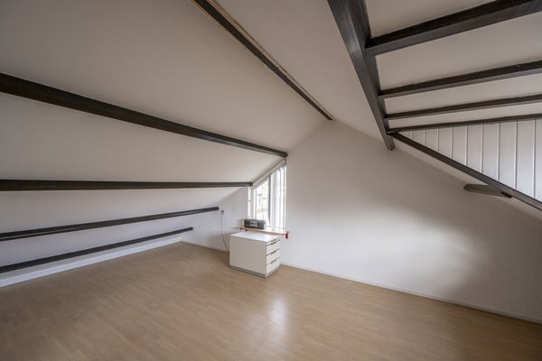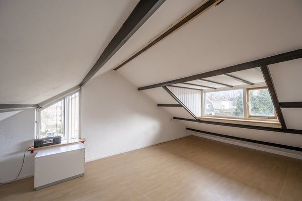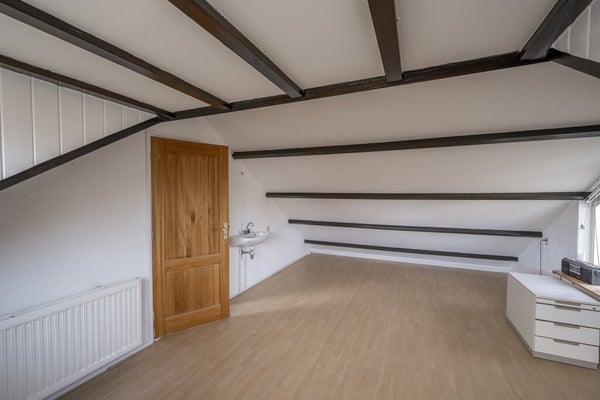 De zolderverdieping is bereikbaar via een vaste trap. Op de voorzolder ligt een bruine laminaatvloer en is een dakraam aanwezig voor daglichttoetreding. Hier bevindt zich tevens de cv-installatie uit 2021.