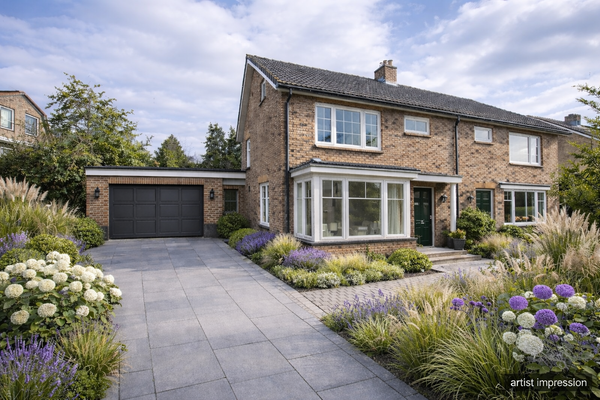 Daarnaast is er een oprit met parkeergelegenheid op eigen terrein. Door het ruime kavel zijn er diverse mogelijkheden, zoals het realiseren van een dubbele oprit of het verder uitbouwen van de woning, uiteraard binnen de geldende regels.