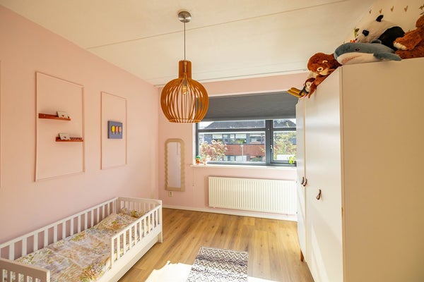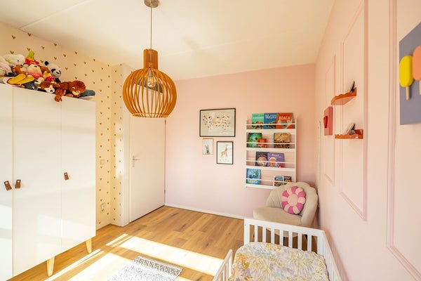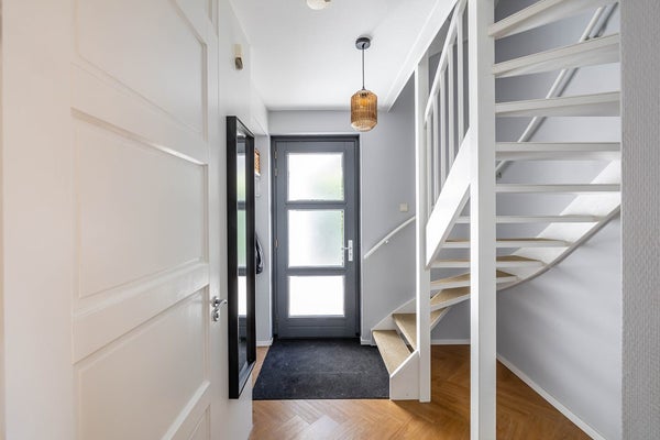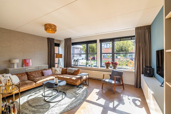 De woning heeft een vrije ligging op de kavel, waardoor de ruimte rondom goed benut wordt. Er is een diepe voortuin die wat afstand tot de rustige straat creëert, een brede oprit richting de aangesloten garage en een diepe achtertuin met verschillende terrassen op het zonnige zuiden. De woonkamer heeft zijramen, waardoor er extra veel licht in huis valt. De keuken en sanitaire ruimtes zijn modern en passend binnen de huidige trends. Mooie details in de gehele woning laten zien dat er veel zorg aan het interieur is besteed. Daarnaast is de woning praktisch met een grote garage en handige bijkeuken. De vier slaapkamers + een werkkamer (overloop tweede verdieping) bieden mogelijkheden voor grote gezinnen en thuiswerkers. Tot slot is er een ruime bergzolder.