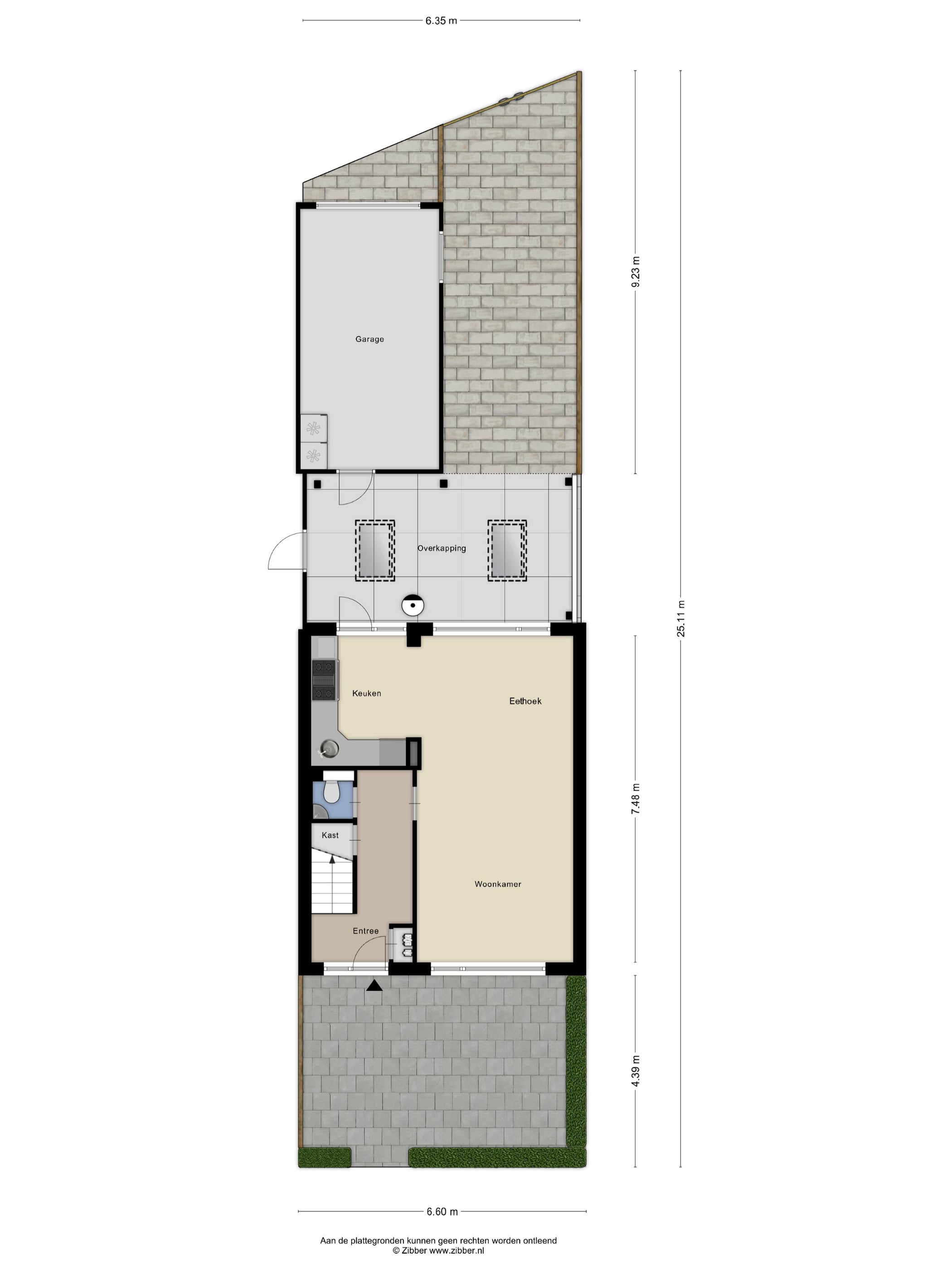 De achtertuin, van 79 m² met een zuidoostligging, biedt toegang via een achterom. Er is tevens een voortuin. Voor parkeren is er een vrijstaande stenen garage voor één auto, inclusief elektra. De woning is energie-efficiënt met dakisolatie en een C.V.-ketel (gas combiketel uit 2022). De huidige eigendomssituatie is volle eigendom.
