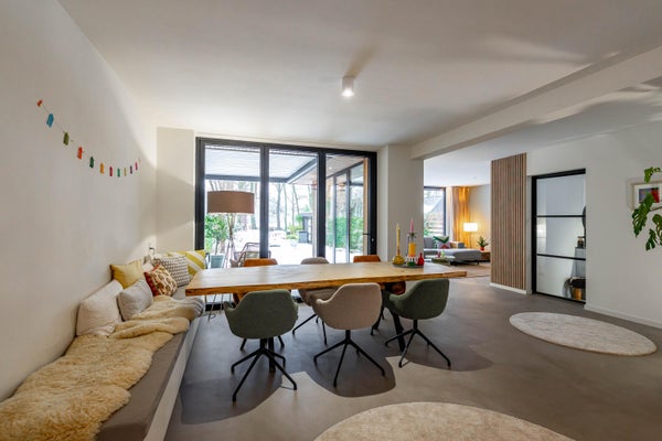 Aan de groene rand van De Zuides ligt deze comfortabele en stijlvol verbouwde woning met een vrij uitzicht over bos en landerijen. De woning, recent uitgebreid en verduurzaamd, heeft energielabel A en is uitgerust met een hybride warmtepomp, een zonneboiler en 19 zonnepanelen, waardoor energiekosten laag zijn. Op de begane grond zijn er meerdere leefruimtes, met een royale woonkeuken en een sfeervolle loungeruimte. De tuin is voorzien van een automatisch lamellendak, en een extra bosperceel van 375 m² zorgt voor privacy en groen uitzicht. Op de eerste verdieping bevinden zich drie slaapkamers en een complete badkamer. De tweede verdieping heeft een ruime vierde slaapkamer. De woning heeft ook een carport met laadvoorziening, en ligt dichtbij scholen en voorzieningen.