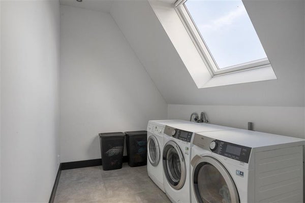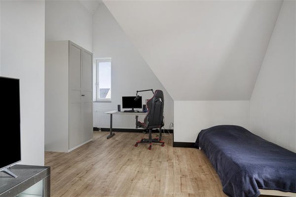 Een bijzondere meerwaarde van deze woning is de slimme indeling van de vijf slaapkamers – verspreid over twee verdiepingen. Op de bovenverdieping vind je drie lichte slaapkamers, terwijl de zolderverdieping twee extra slaapkamers en een separate wasruimte biedt. De verdieping kans zelfs in een apart appartement omgevormd worden voor een zelfstandige bewoner. Kortom, hier heeft ieder gezinslid zijn eigen ruimte.