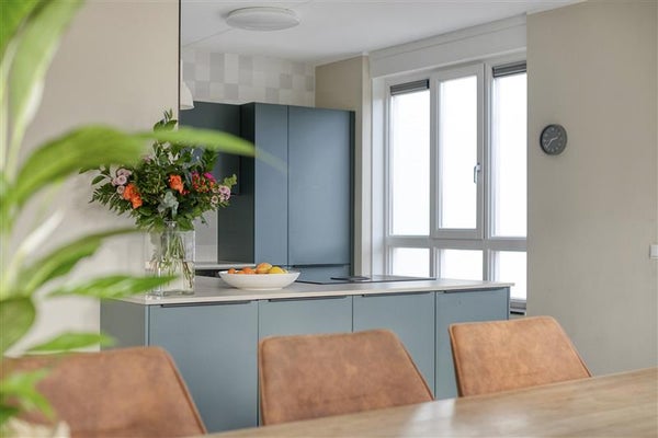 De volledig uitgeruste open keuken, geplaatst in een praktische U-opstelling, vormt het hart van je nieuwe huis. Met alle moderne inbouwapparatuur tot je beschikking – denk aan een geïntegreerde afzuigkookplaat, royale koelkast, vaatwasser en vriezer – worden al jouw culinaire ambities werkelijkheid. De aangrenzende eethoek biedt voldoende ruimte voor zowel intieme diners als uitgebreide familiebijeenkomsten.