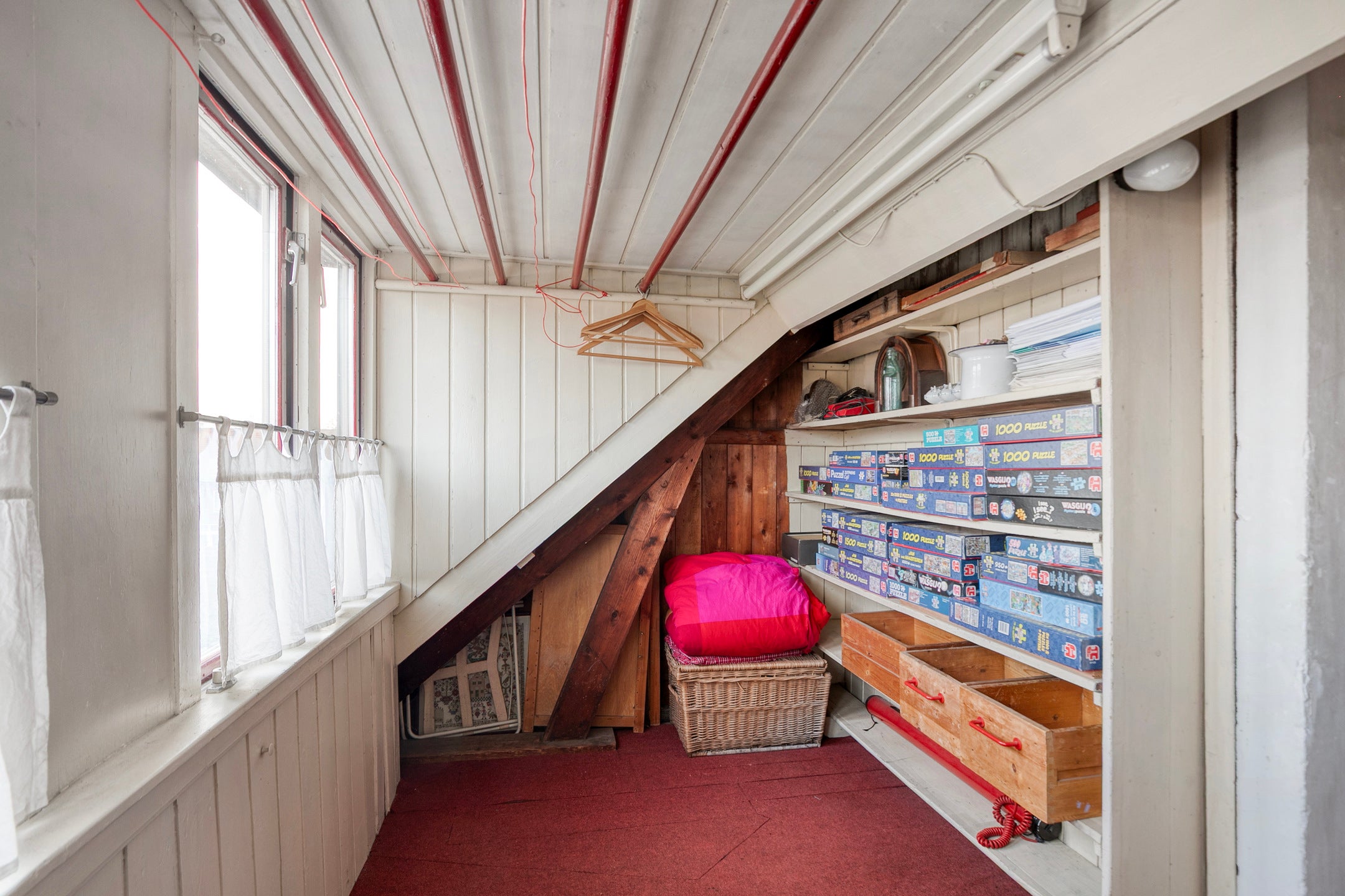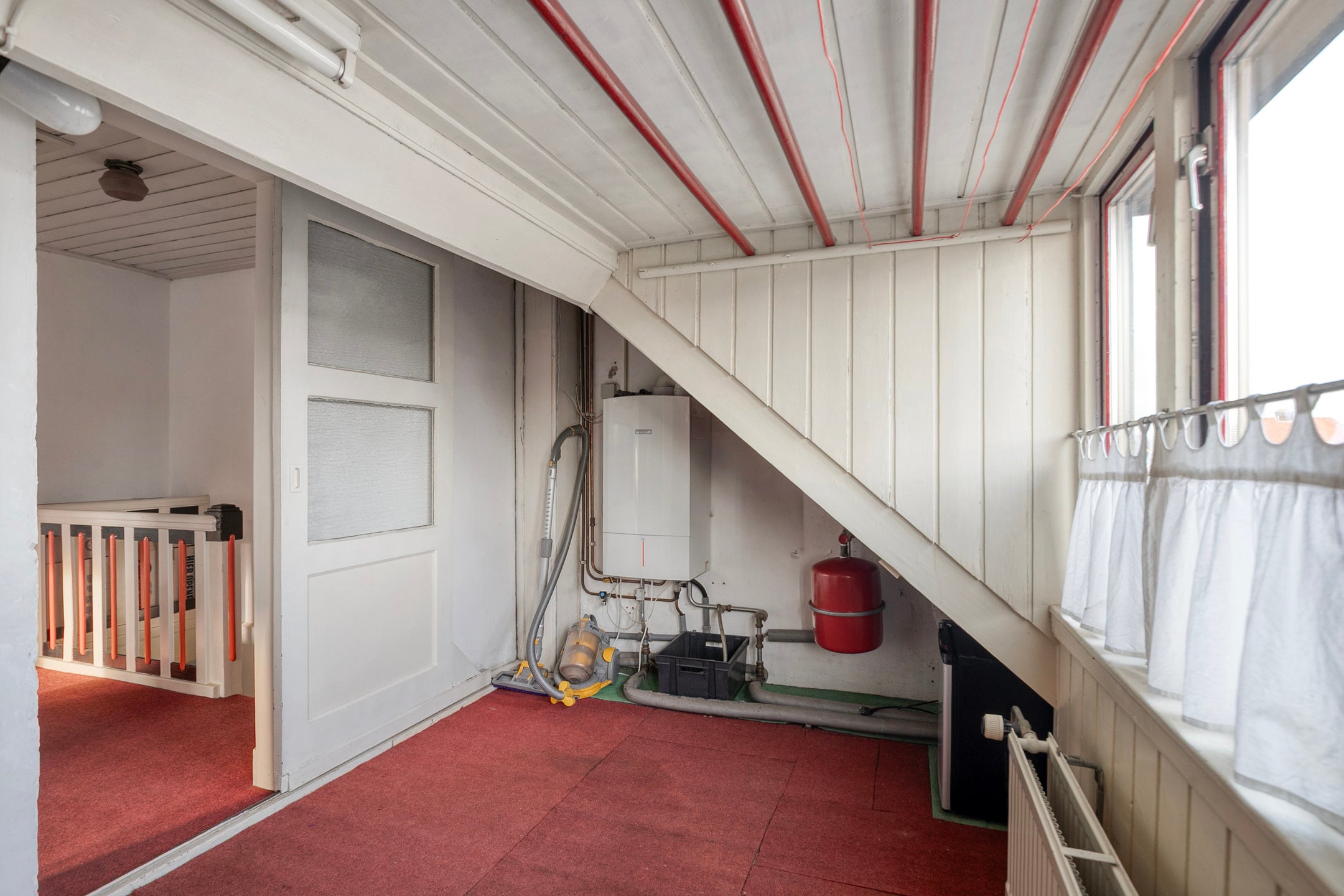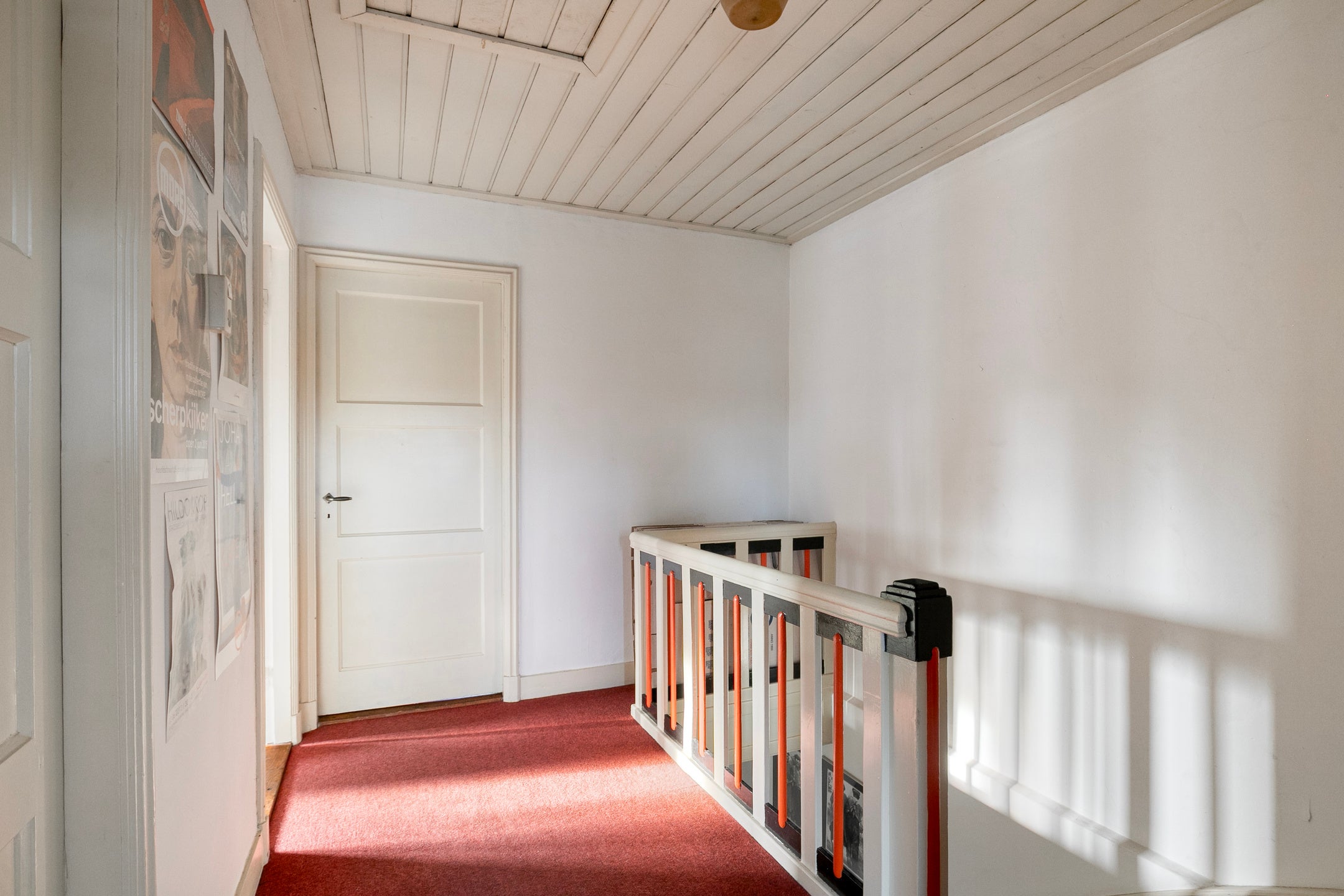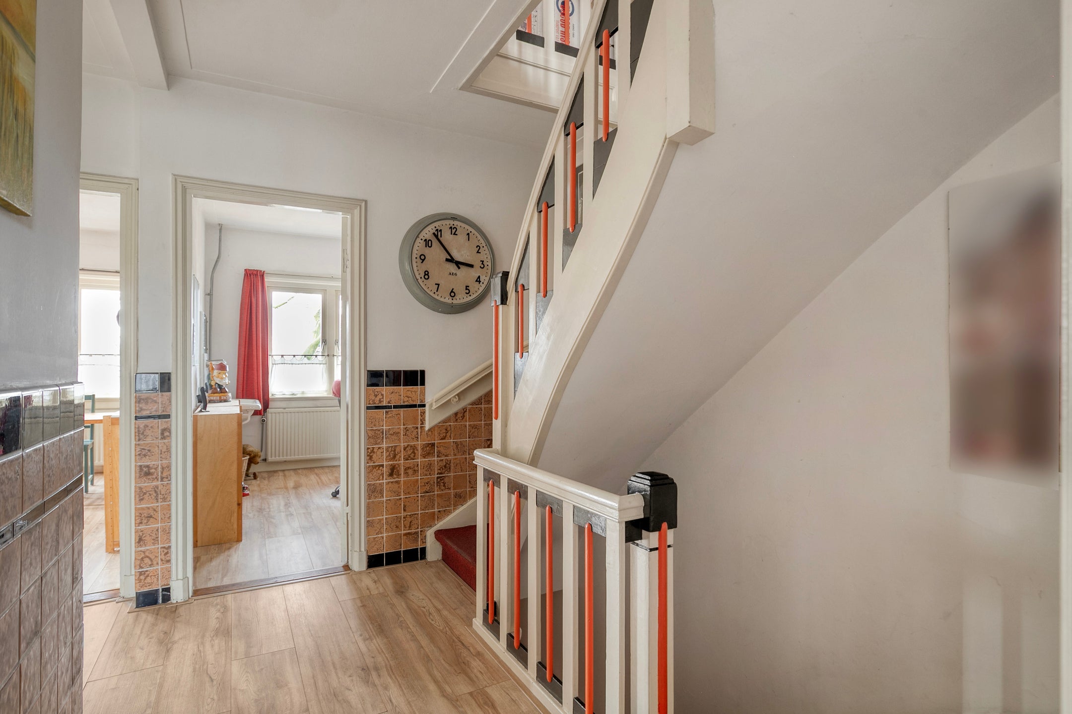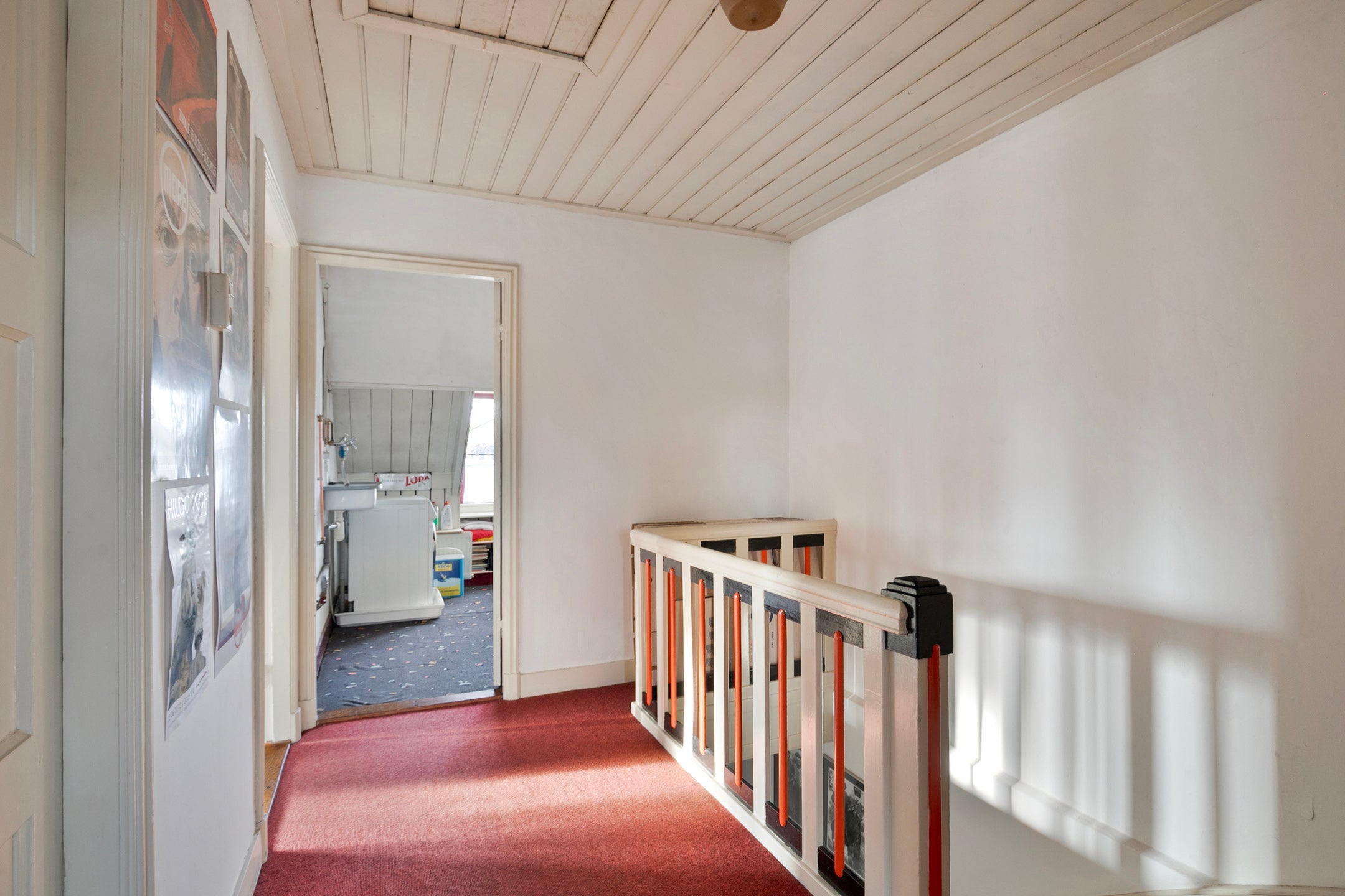 De indeling omvat een ruime hal met originele elementen, een nette keuken, en op de eerste verdieping een vernieuwde badkamer en meerdere slaapkamers, waarvan er één toegang biedt tot een balkon. Op de tweede verdieping zijn nog drie slaapkamers en extra bergruimte.