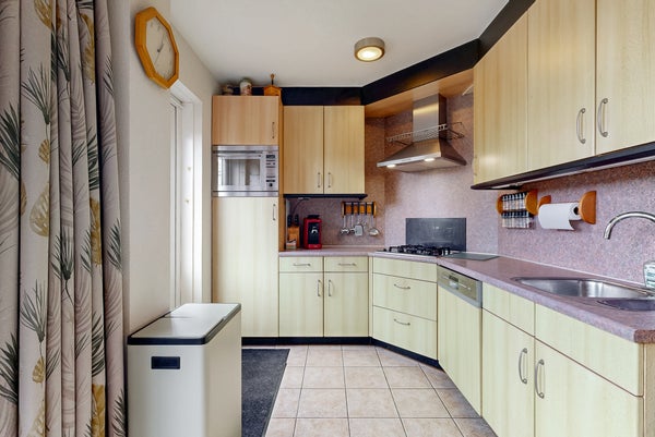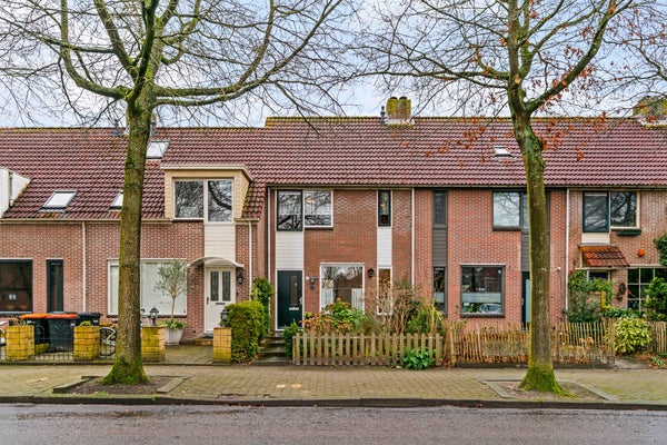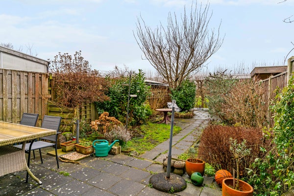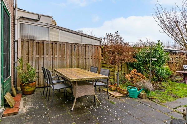 De woning heeft een lichte Z-vormige woonkamer met openslaande tuindeuren, een keuken aan de achterzijde met inbouwapparatuur, en een tussenhal met een toilet. Op de eerste verdieping zijn drie slaapkamers en een moderne badkamer met douche en toilet. De tweede verdieping heeft een vierde slaapkamer met dakkapel. De achtertuin biedt een stenen berging en is bereikbaar via een achterom.