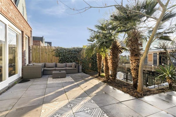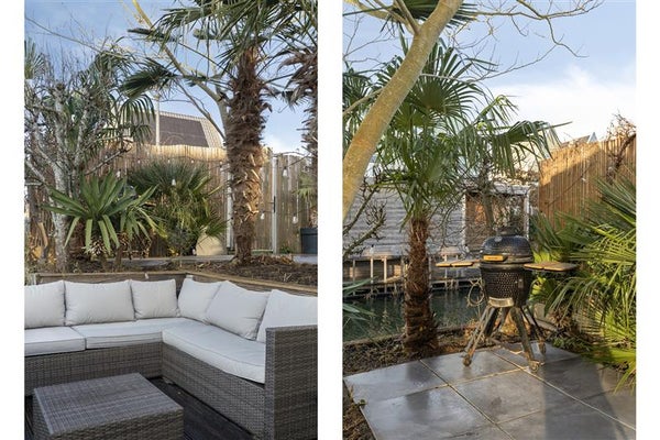 Loop je vanuit de woonkamer naar buiten, dan sta je in een absoluut pareltje van een tuin. Op het zuidwesten gelegen, geniet je maximaal van de zon – van de vroege ochtend tot de late avond. De zorgvuldig aangelegde, exotische planten en inrichting geven je het gevoel dat je elke dag op vakantie bent. En dat allemaal met jouw terras aan het water! Het is de perfecte plek voor een zomerbarbecue, een ontspannend boekmoment of gewoon om uren naar de kalmte van het water te staren.