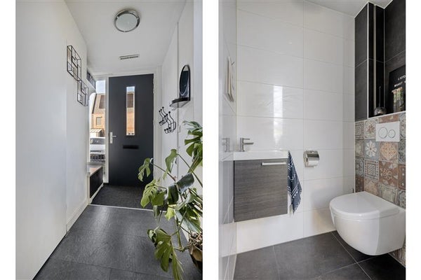 Deze schitterende hoekwoning is alles wat je zoekt – en meer. Zodra je binnenkomt via de zij-entree merk je direct hoe goed over elke vierkante meter is nagedacht. De hal biedt toegang tot het moderne toilet en de meterkast, maar voert je ook snel door naar de rest van het huis. Wat meteen opvalt? De slimme indeling, het vele licht en de sublieme afwerking. Hier begin je iedere dag met frisse energie en kom je volledig tot rust.