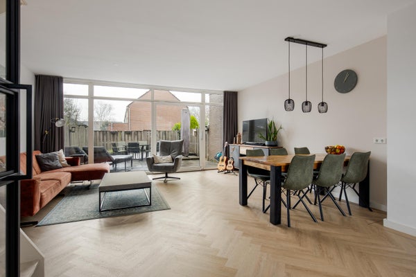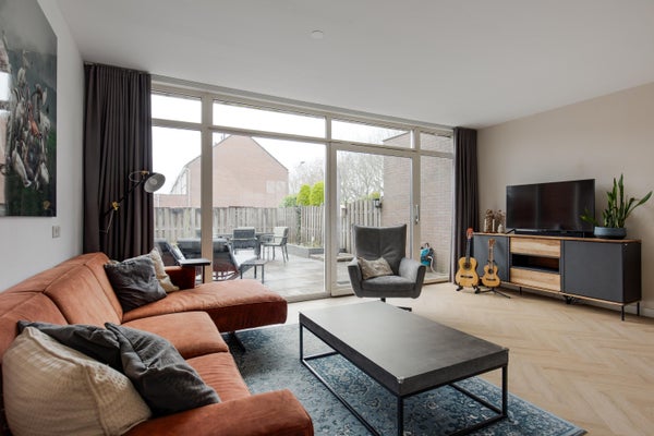 - Ruime en zeer lichte woonkamer veel glas aan de achterzijde.