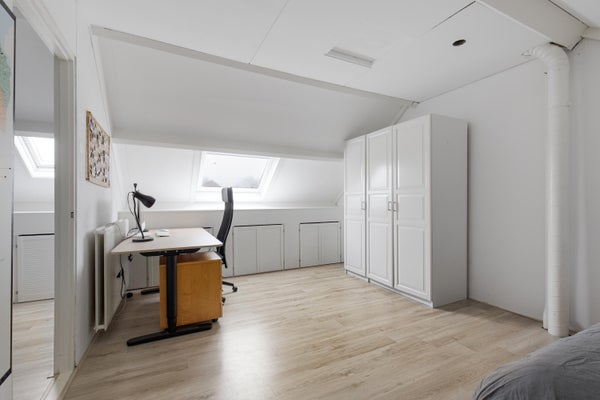 Royale zolderverdieping welke nu in gebruik is als 4e slaapkamer. Door het plaatsen van één of twee dakkapellen (voorzijde vergunningsplichtig) aan de achterzijde is het mogelijk hier een 5e slaapkamer te realiseren.