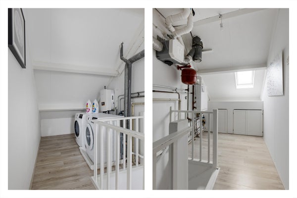 Overloop met c.v.-installatie (Intergas, bouwjaar 2017) en wasmachine-/droger aansluiting.