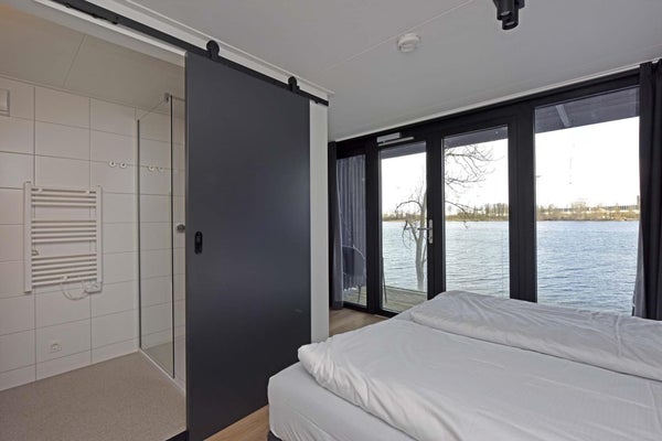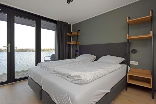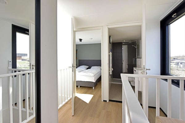 Deze ruime, vrijstaande lodge direct aan het water is geschikt voor 6 personen. Het is een echte familiewoning met een fijne zithoek, een grote eettafel, veel vrije ruimte en een open keuken. De keuken is van alle gemakken voorzien. Verder vind je er onder andere een koffiecupapparaat, een Quooker, een combimagnetron en een vaatwasser. Op de benedenverdieping is één apart toilet. Daarnaast beschikt de woning over vloerverwarming en airconditioning. Alle drie de slaapkamers bevinden zich boven. Er zijn twee slaapkamers met elk twee eenpersoonsbedden. Op de derde slaapkamer is een stapelbed aanwezig. De grootste slaapkamer heeft een aangrenzende badkamer en toegang tot het balkon. De tweede badkamer is bereikbaar via de overloop. Beide badkamers hebben een inloopdouche. Op het gezellige terras buiten is tuinmeubilair aanwezig. Het terras is overdekt dankzij het balkon op de bovenverdieping.