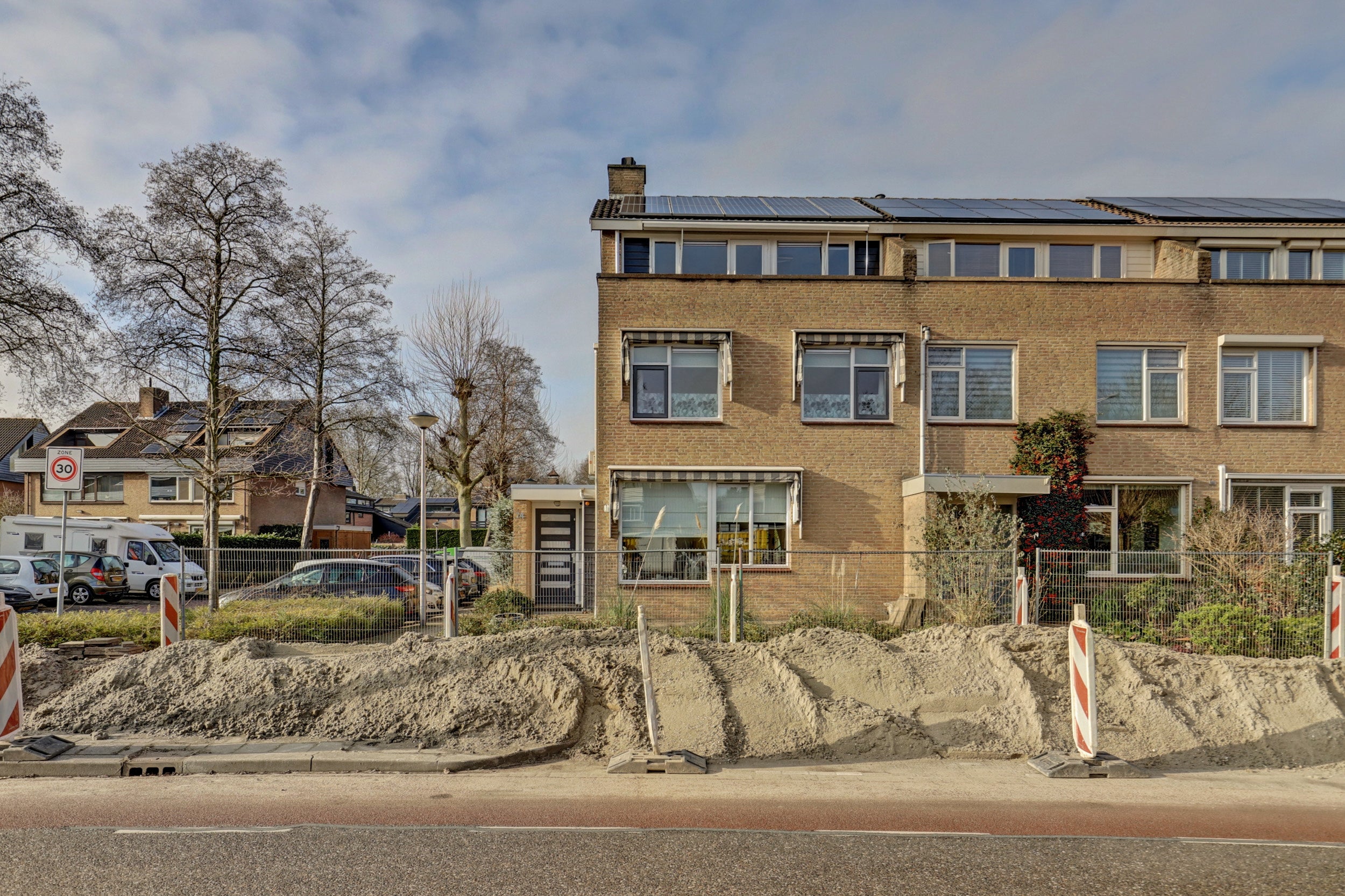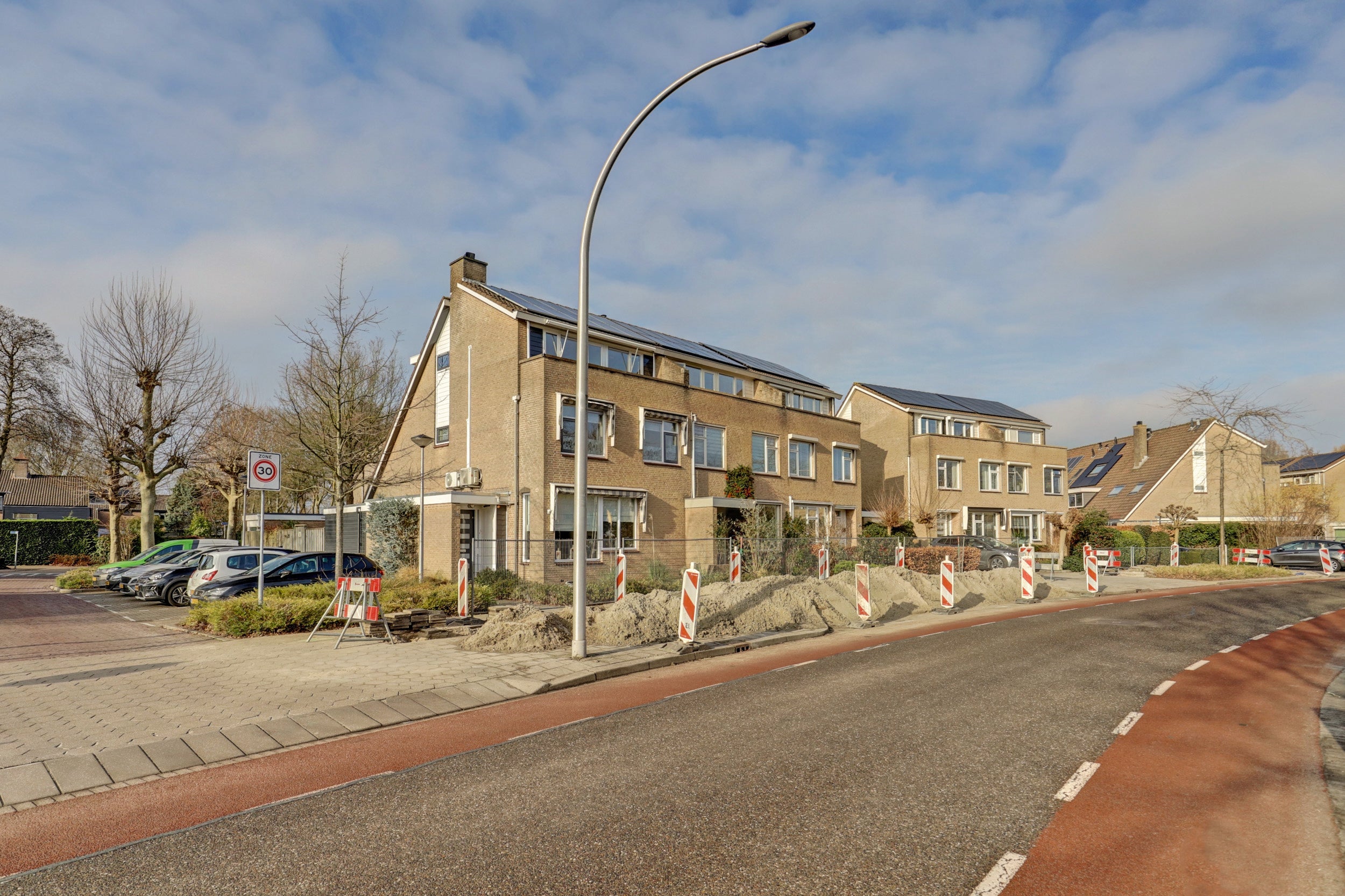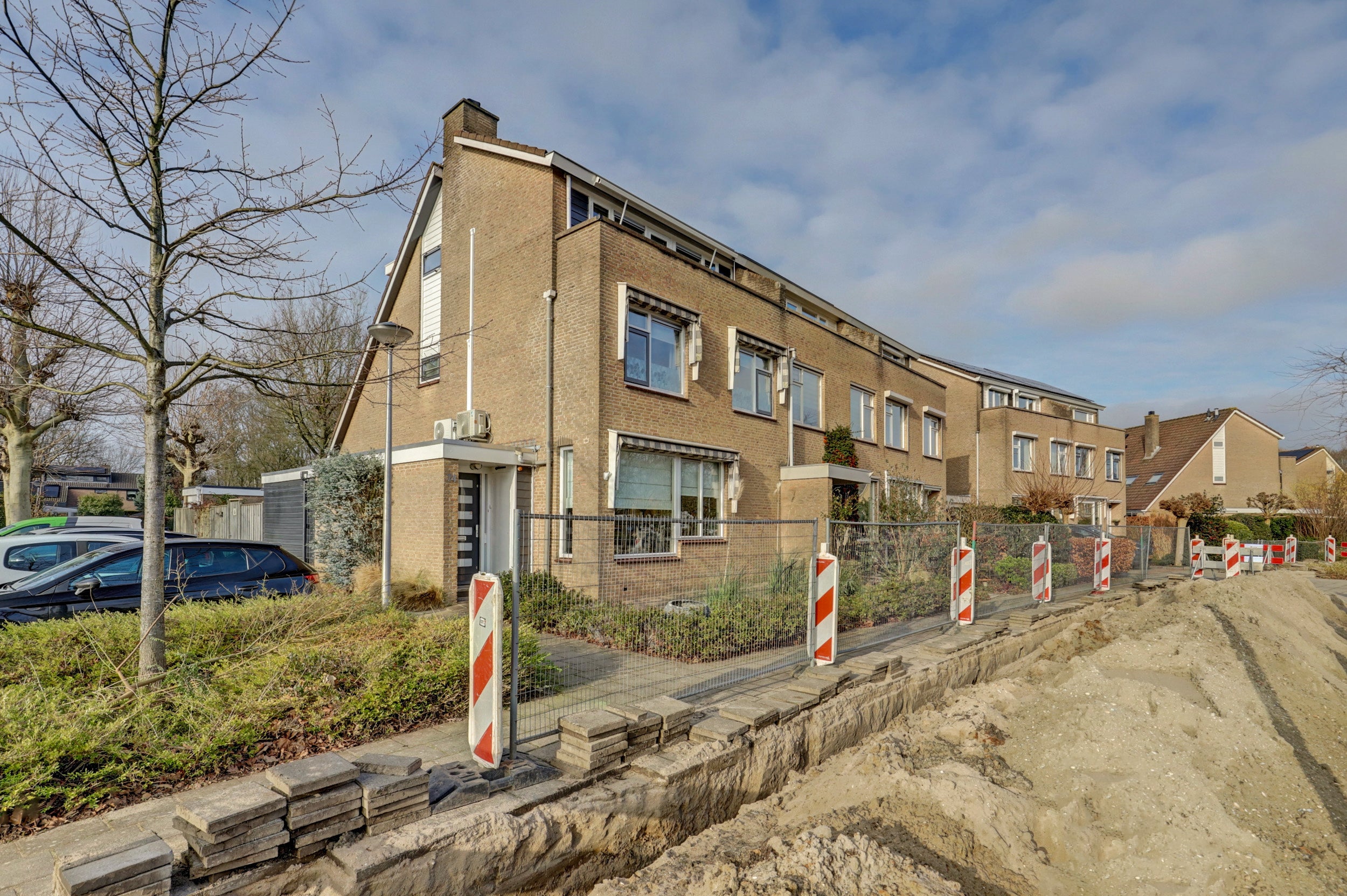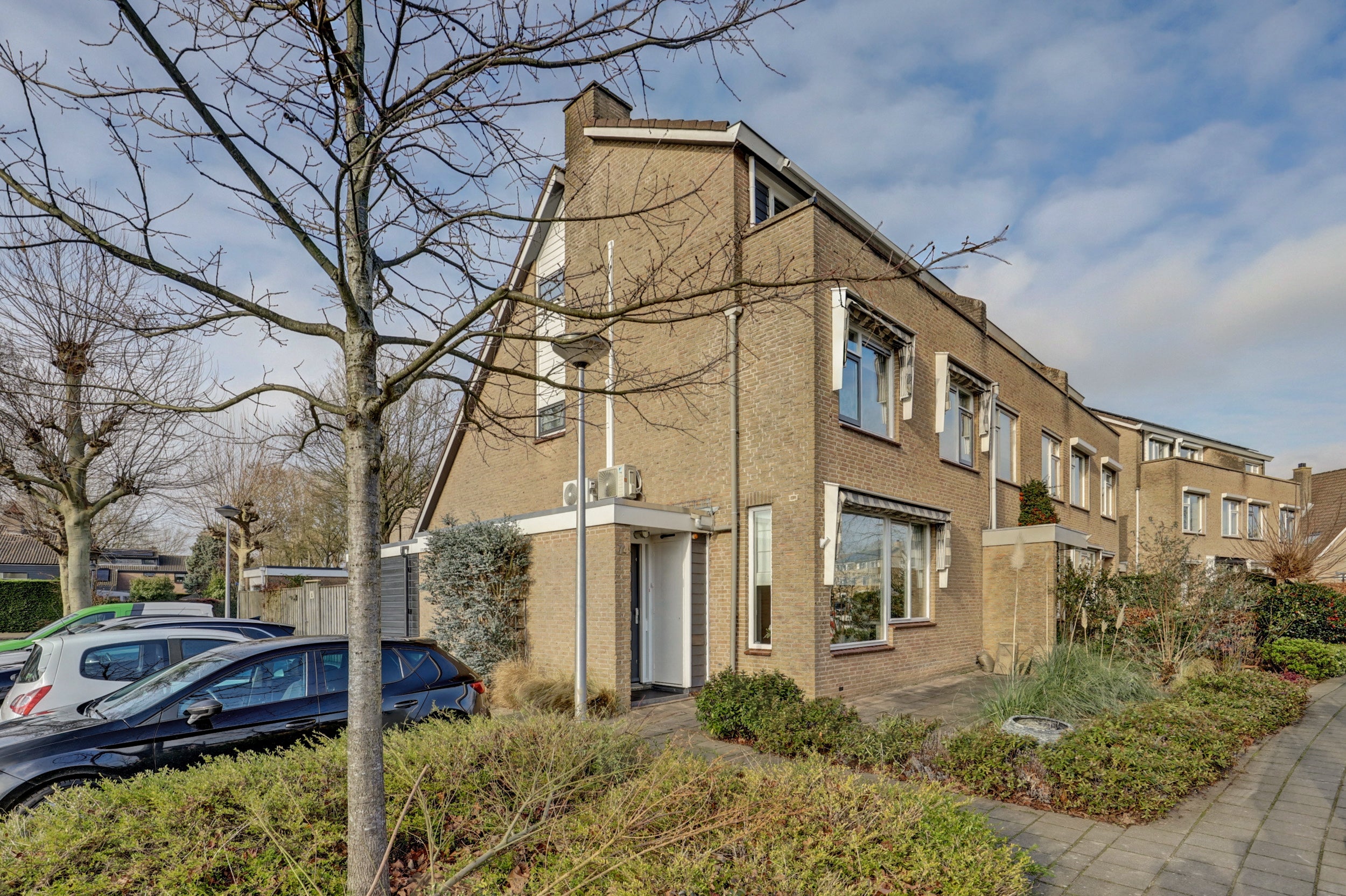 Deze riante hoekwoning met een vrijstaande garage en een privé parkeerplaats is gelegen op een gewilde locatie in Nederhoven. Met een perceel van 219 m² en een zonnige tuin biedt de woning veel privacy. De woning, gebouwd in de jaren '70, heeft een woonoppervlakte van 163 m² en bevat 6 kamers, waaronder 4 slaapkamers. De ruime woonkamer met open keuken van ca. 50 m² heeft een visgraatvloer en openhaard. De aangrenzende tuin, gelegen op het westen, biedt toegang via dubbele tuindeuren. Achterin staat een garage die kan dienen als kantoor. De eerste en tweede verdieping herbergen comfortabele slaapkamers, waarvan de masterbedroom is samengevoegd uit twee. De luxe badkamer heeft een dubbel wastafelmeubel en inloopdouche. Tevens zijn er zonnepanelen aanwezig.