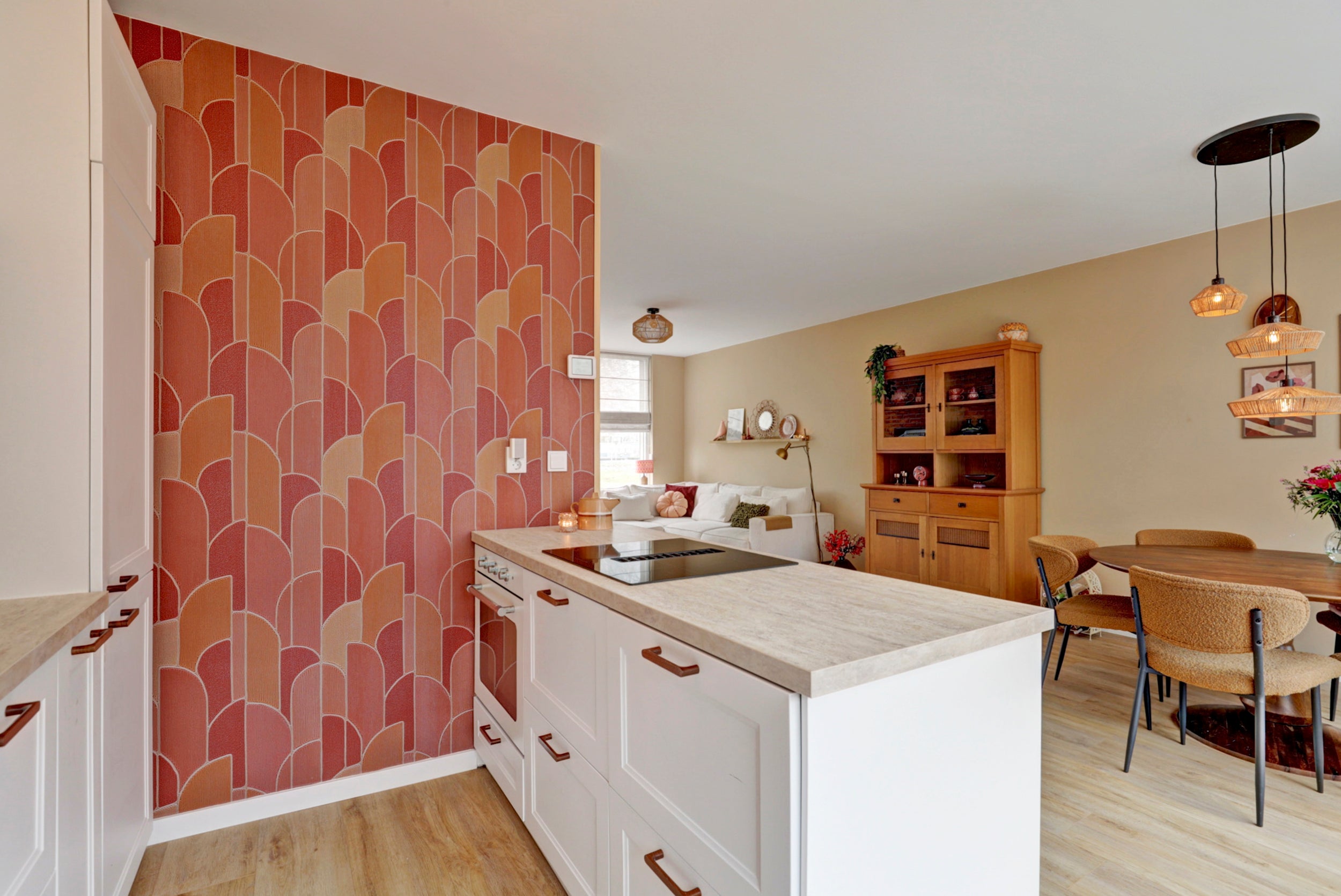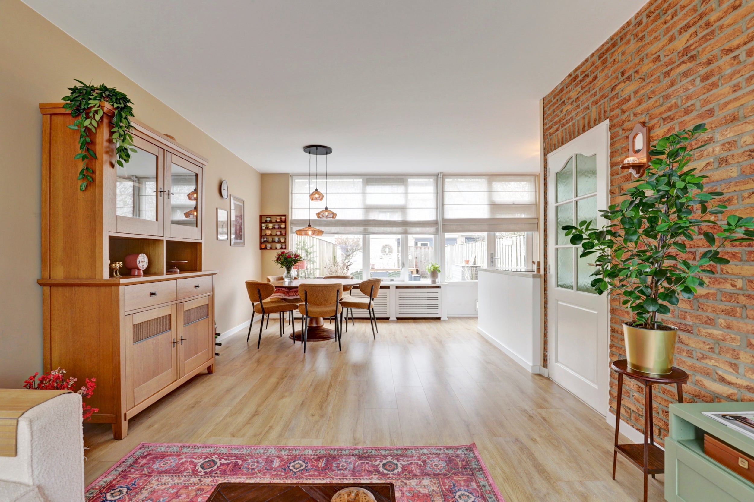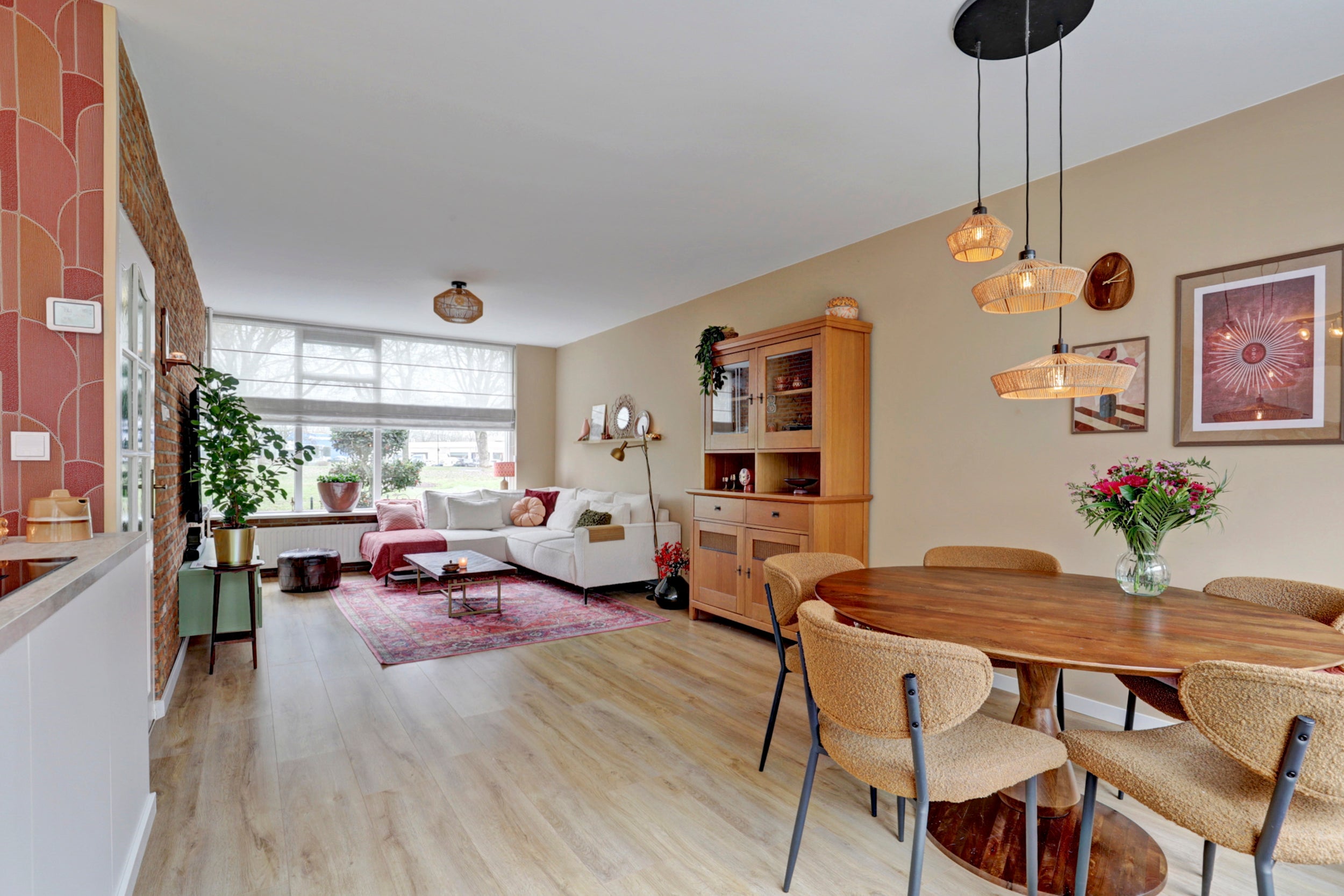 Deze gemoderniseerde royale hoekwoning in de wijk Nederhoven beschikt over 4 slaapkamers en een ruime woonkamer met moderne open keuken. De woning biedt een prachtig uitzicht en een diepe achtertuin van ruim 14 meter. De hal met een sfeervolle Portugese vloertegel leidt naar de woonkamer, afgewerkt met een neutrale laminaatvloer en grote ramen voor veel lichtinval. De in 2023 geplaatste keukens biedt moderne apparatuur en een kookeiland. Op de eerste verdieping zijn drie ruime slaapkamers en een complete badkamer met ligbad en douche. De tweede verdieping heeft een vierde slaapkamer en een voorzolder met wasmachine aansluiting. De ligging in de groene wijk biedt rust en nabijheid van scholen en recreatie.