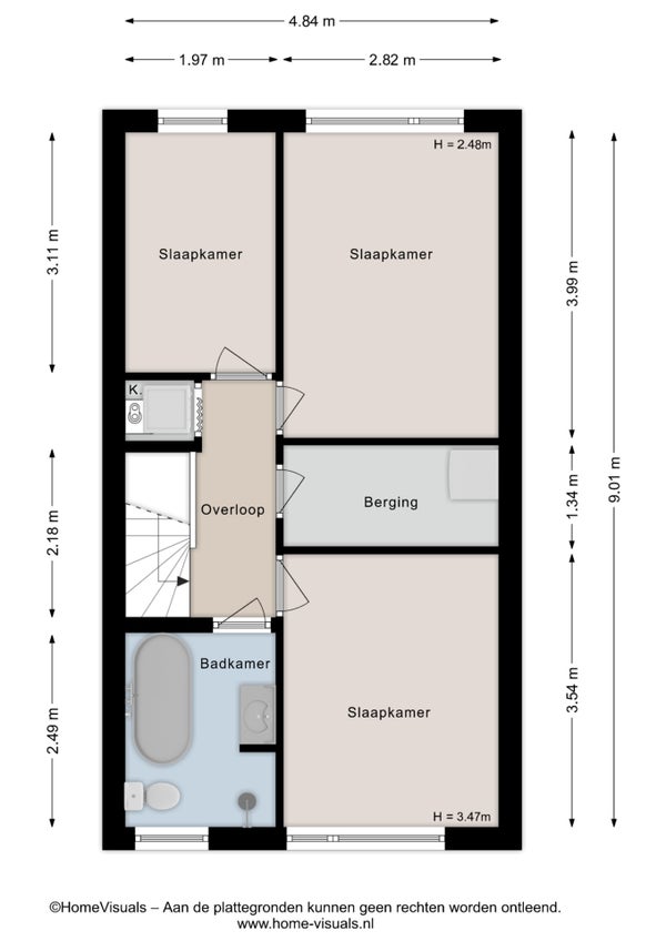 - De tussenwoning heeft een woonoppervlakte van 87 m² en beschikt over 4 kamers, waarvan 3 slaapkamers;