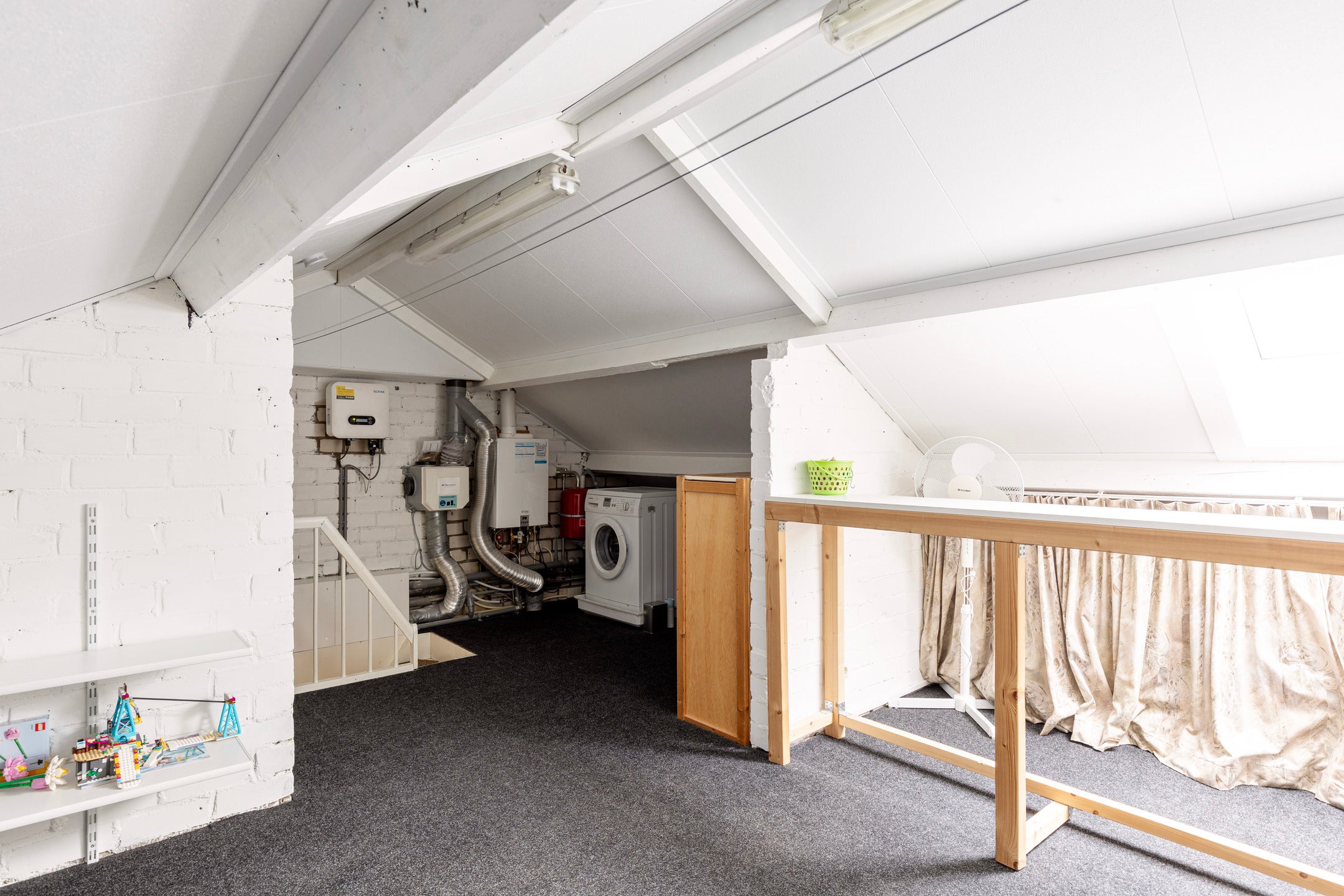 De indeling omvat op de begane grond een hal met toegang tot het toilet, de keuken en de woonkamer, waar je uitzicht hebt op de tuinen. Op de eerste verdieping zijn drie slaapkamers en een recent vernieuwde badkamer. De zolder biedt mogelijkheden voor een vierde slaapkamer en is bereikbaar via een vaste trap. Met energielabel A+ en diverse duurzame voorzieningen, zoals zonnepanelen, is deze woning een ideale keuze.
