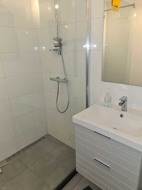 Toegang via trap op de 2e verdieping. Gang met toegang tot apart toilet, badkamer met douche en aparte wasruimte. Toegang naar woonkamer met open keuken voorzien van koelkast met vriezer, vaatwasser, afzuigkap, combi magnetron, kookplaat en veel kastruimte. Ook toegang naar het balkon. Via de woonkamer naar de ruime slaapkamer met veel lichtinval door de grote ramen.